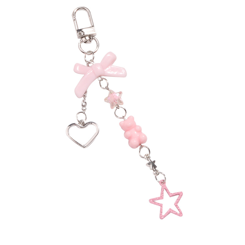甜酷辣妹风镂空爱心钥匙扣挂件可爱小熊蝴蝶结配件耳机套包包装饰