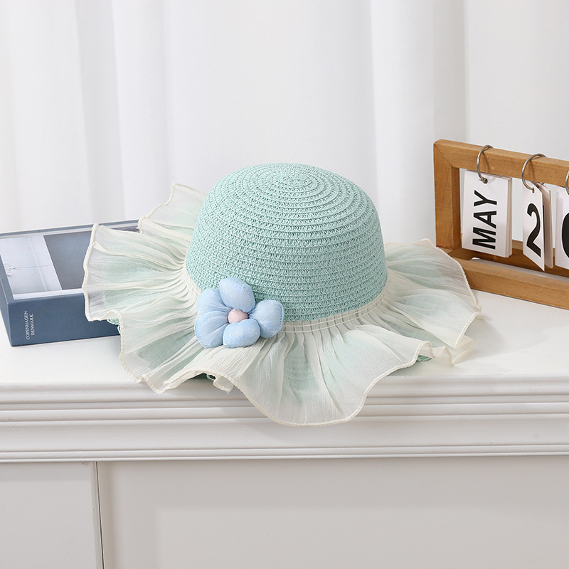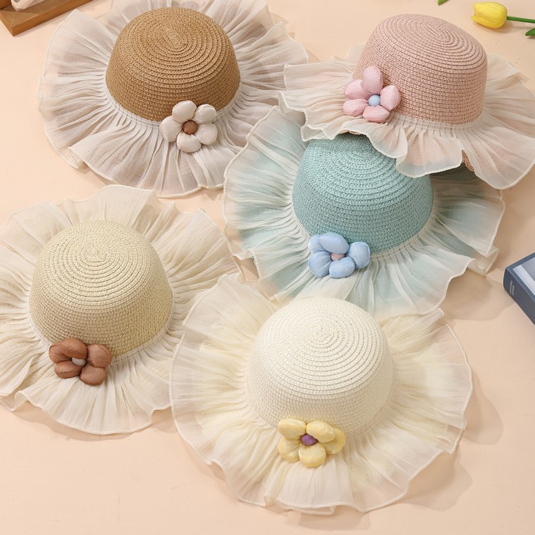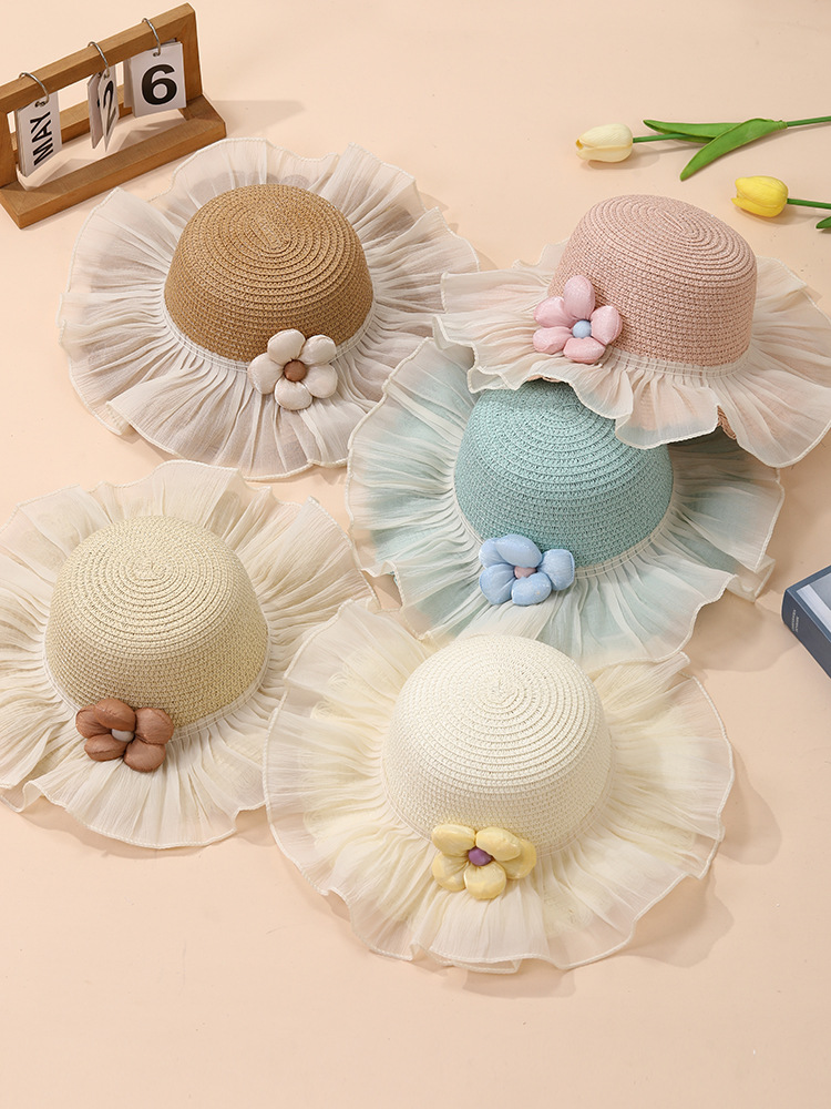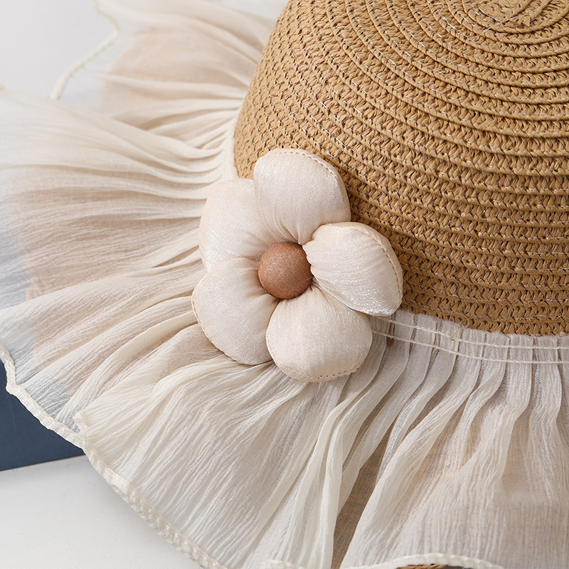 夏季儿童遮阳防晒帽子女孩太阳帽大帽檐2025新款蕾丝草帽户外海边 English | 投诉