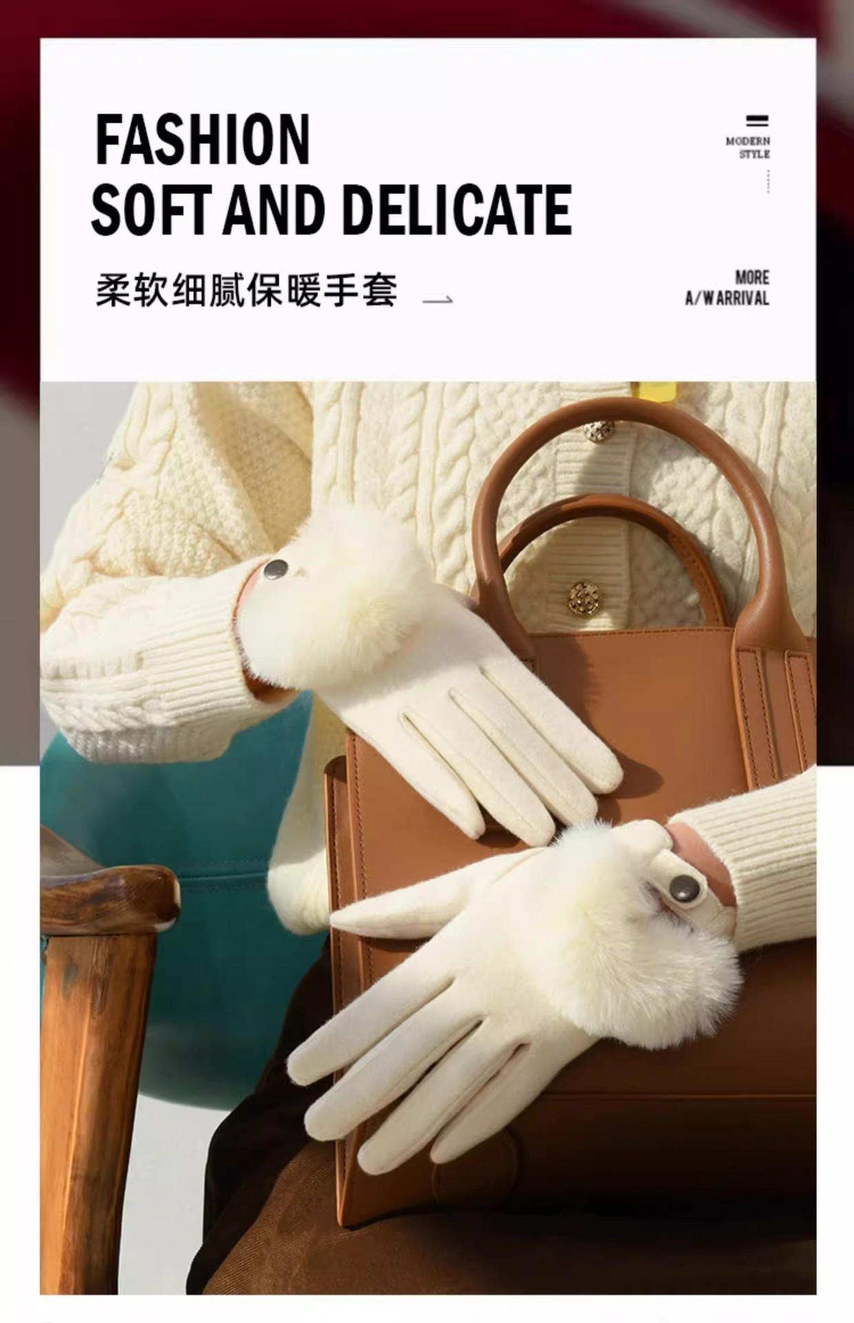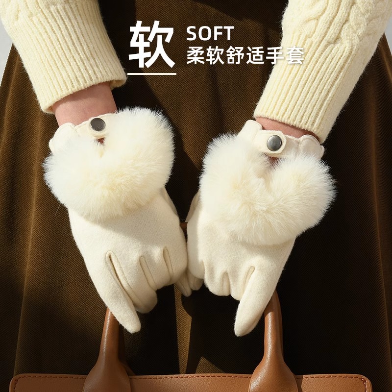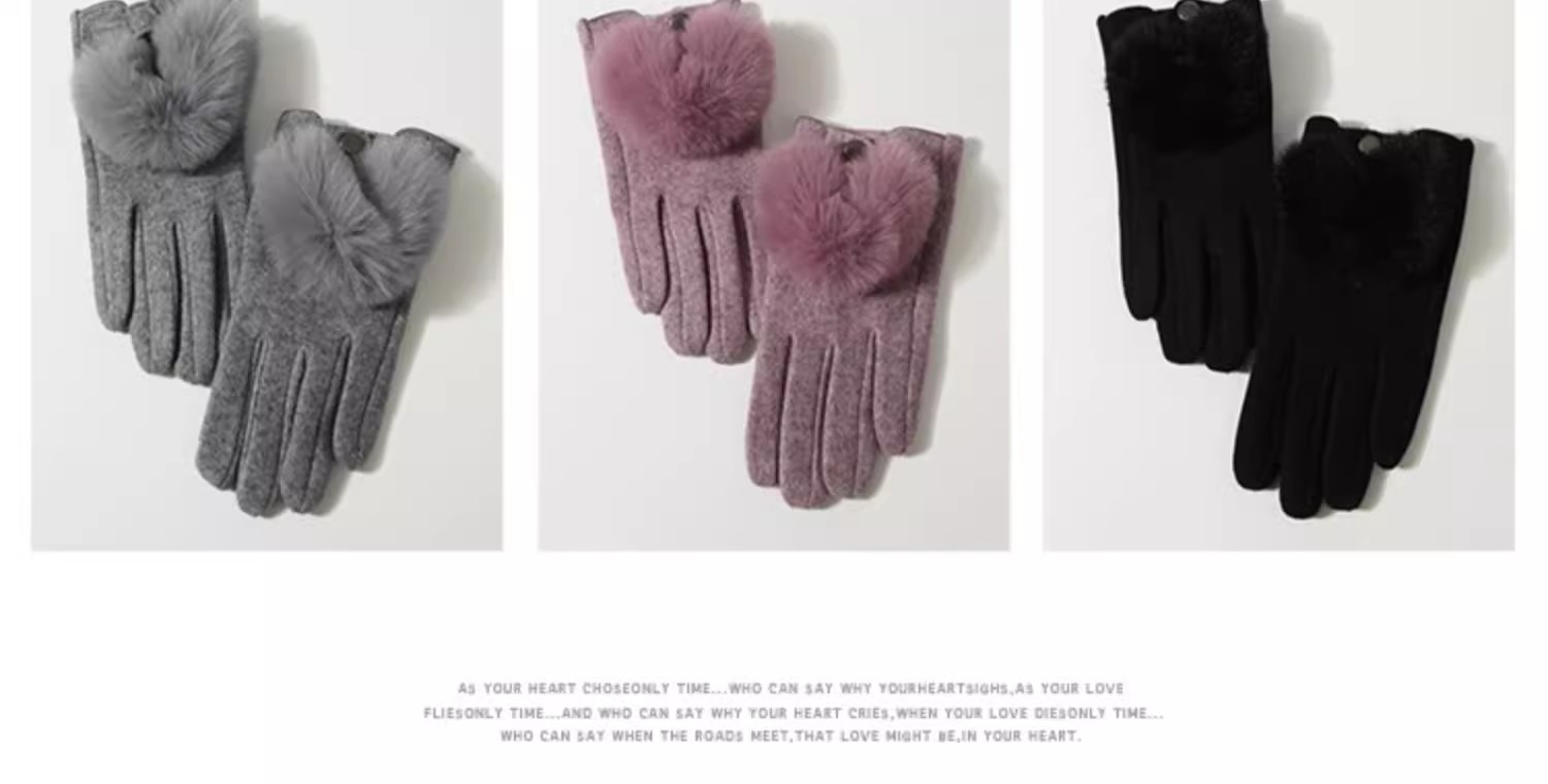2024冬季新款毛球软糯手套保暖时尚显气质防寒触屏开车暖手套跨境 English | 投诉