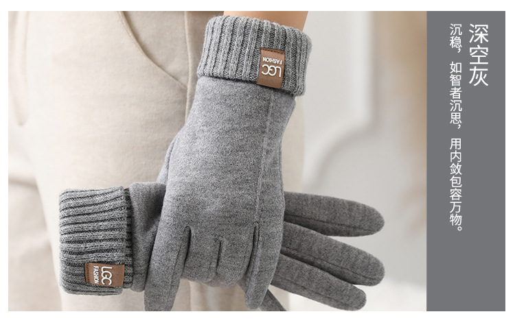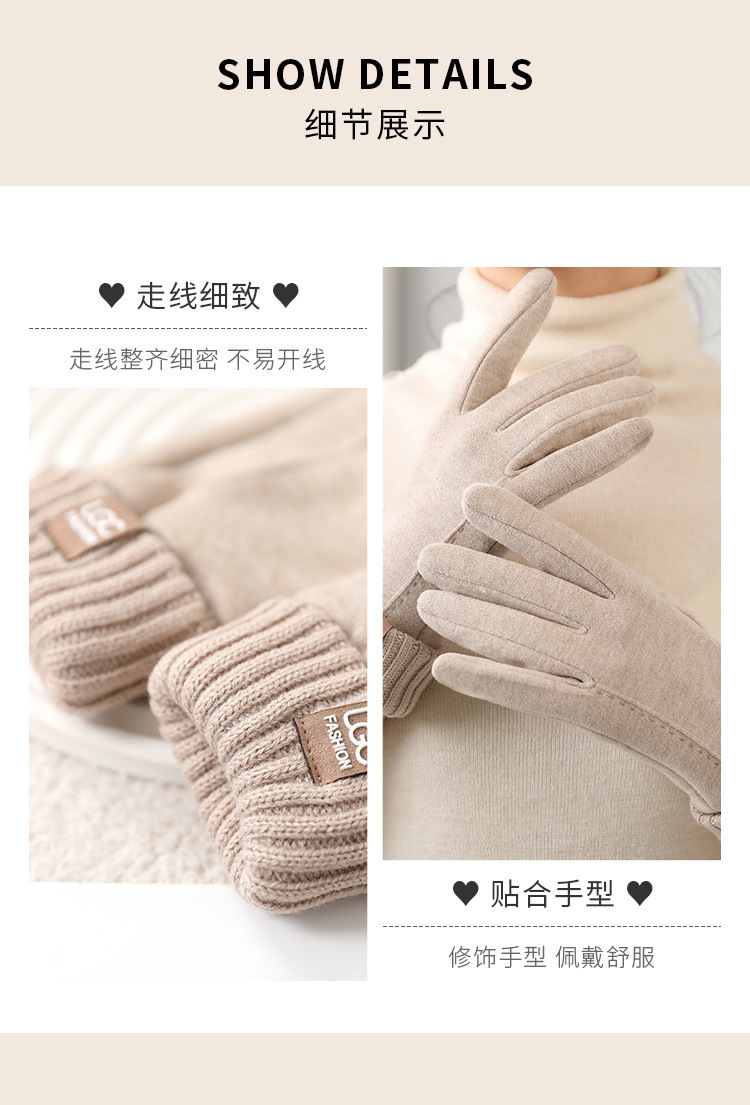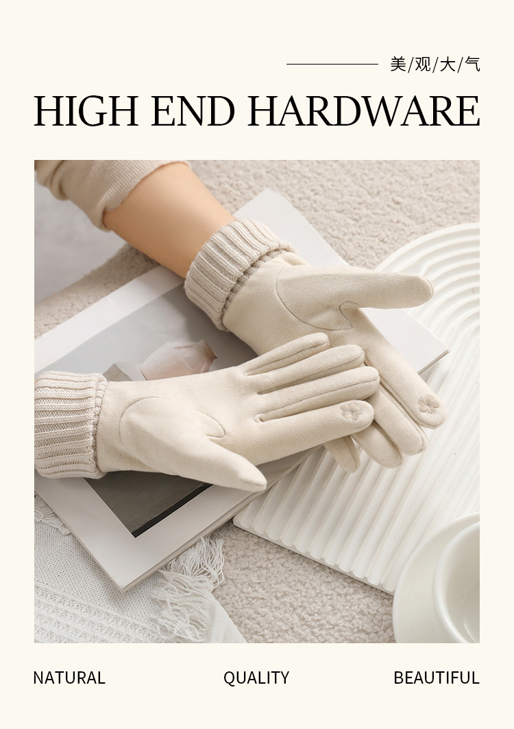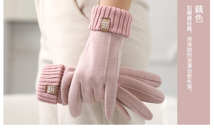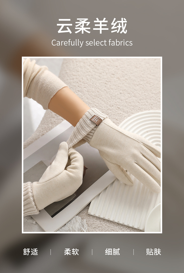 新款秋冬羊绒罗口触屏骑行防寒批发保暖柔软厚 手套ins风女士手套 English | 投诉