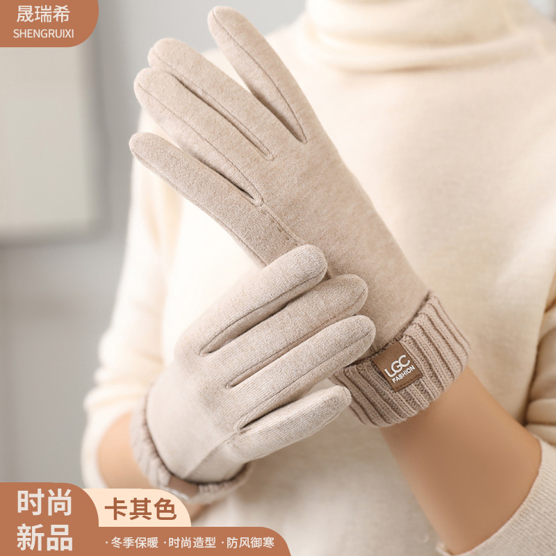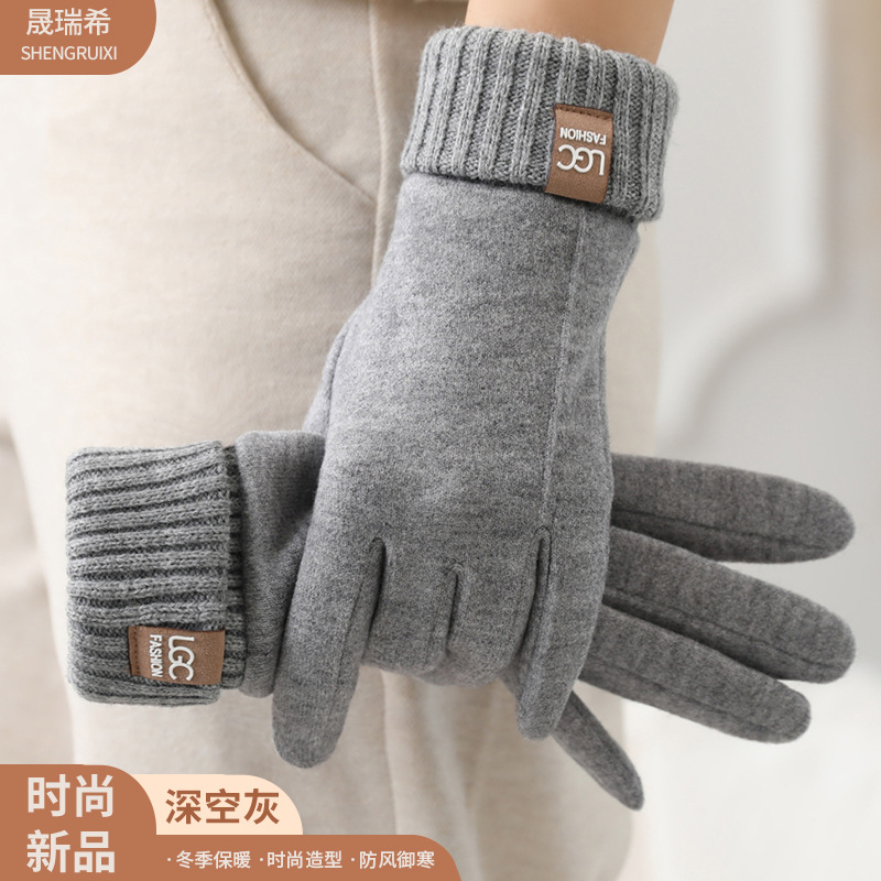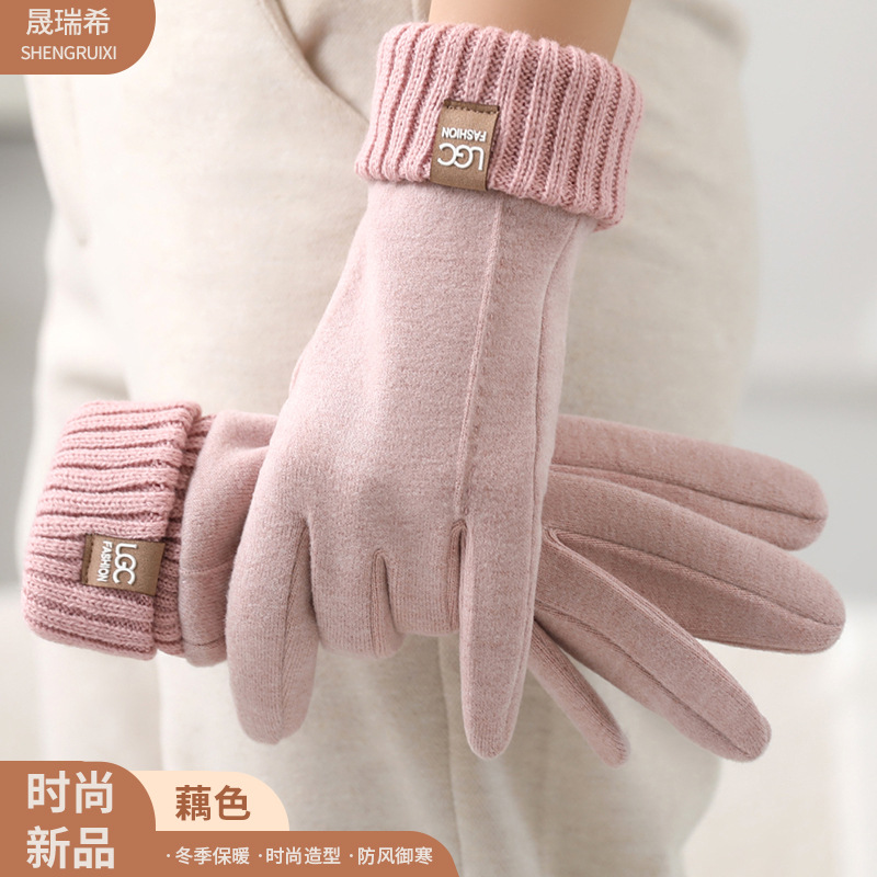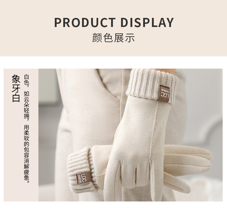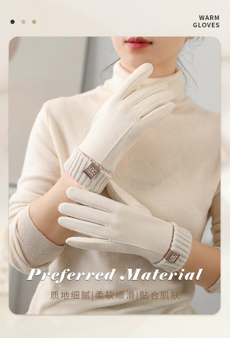 新款秋冬羊绒罗口触屏骑行防寒批发保暖柔软厚 手套ins风女士手套 English | 投诉