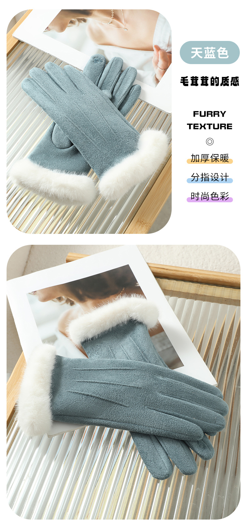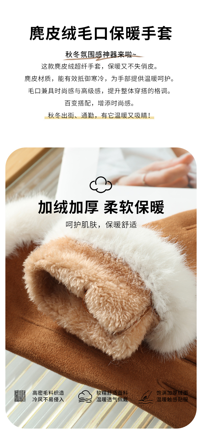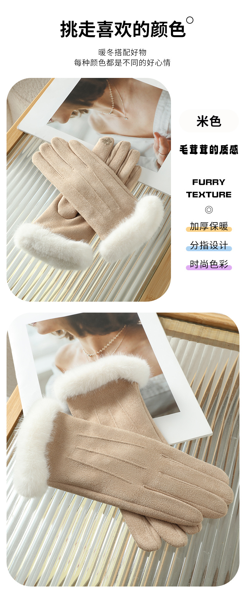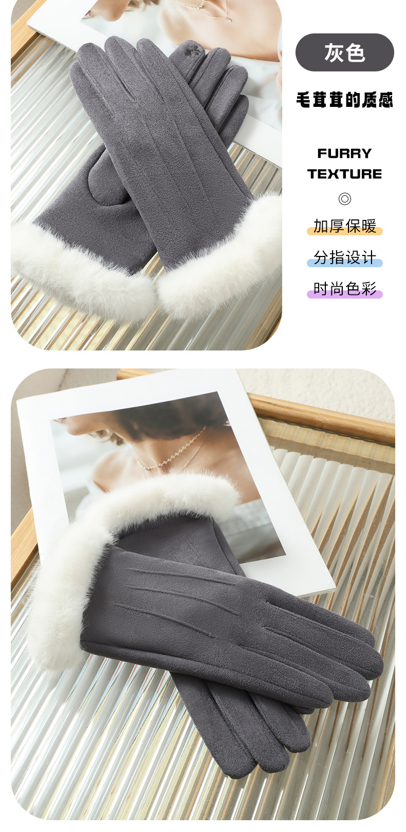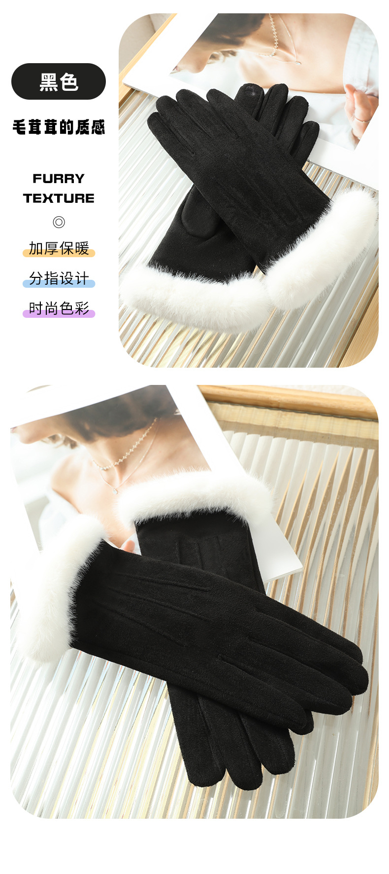 功能: 保暖 款式: 分指手套 面料名称: 麂皮绒 产品类别: 保暖手套 品牌: 晟瑞希 主面料成分: 麂皮绒 货号: SR-2405 颜色: 粉色,黑色,灰色,焦糖色,米色,天空色 主要下游平台: ebay,亚马逊,wish,速卖通,独立 有可授权的自有品牌: 否 是否跨境出口专供货源: 是 适合季节: 冬季 上市年份/季节: 2025年秋季 产地: 河北保定 风格: 自然,甜美,学院风 主面料成分含量: 81%(含)-95%(含) 风格分类: 清新甜美 处理工艺: 其他 主要销售地区: 非洲,欧洲,南美,东南亚,北美,东北亚, 主面料成分2含量: 11%(含)-20%(含)