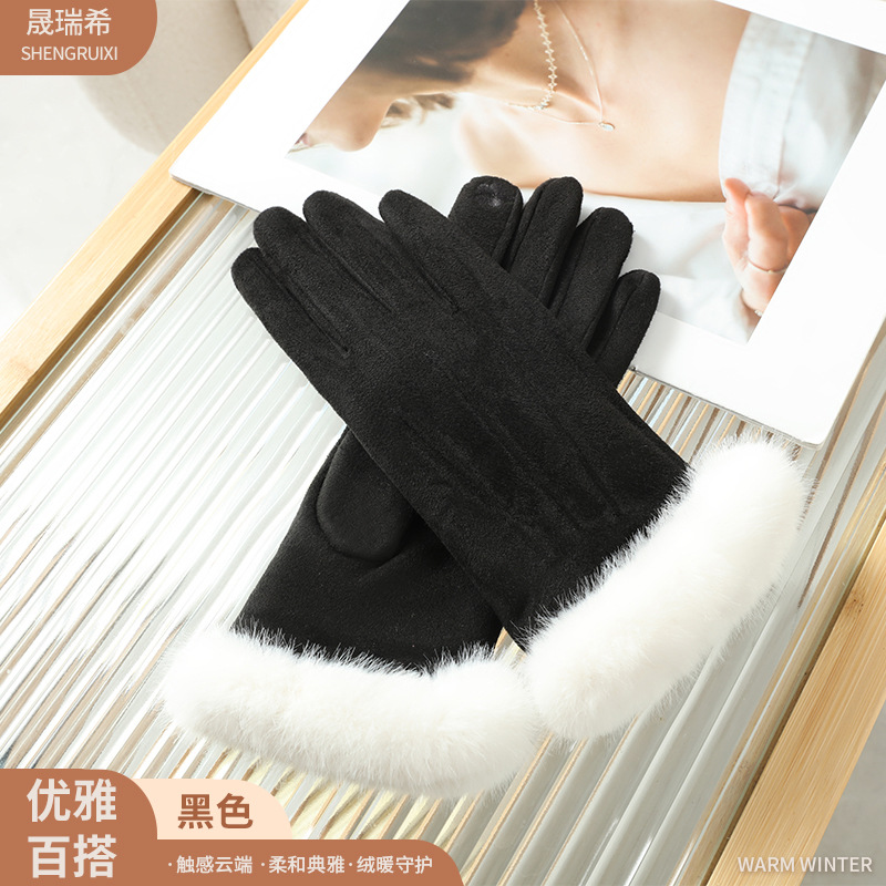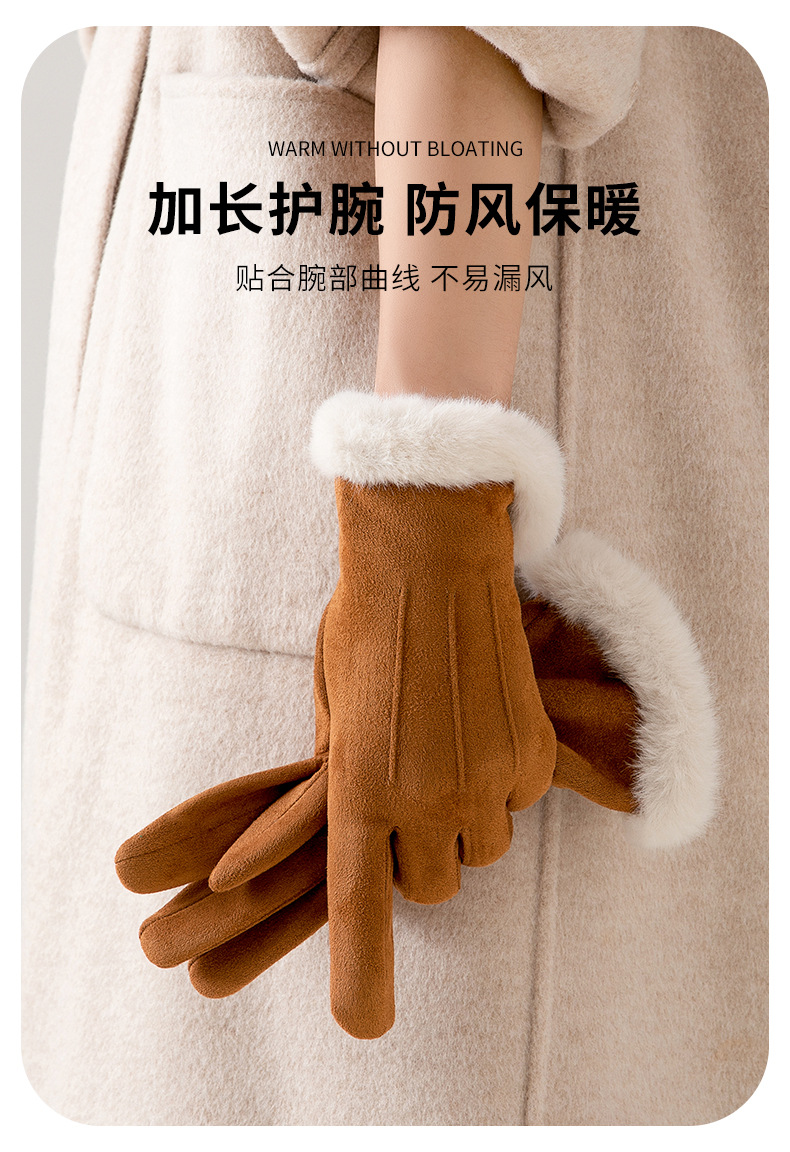 秋冬季保暖手套女士毛绒腕口加绒加厚韩版户外骑车可触屏骑行手套 English | 投诉