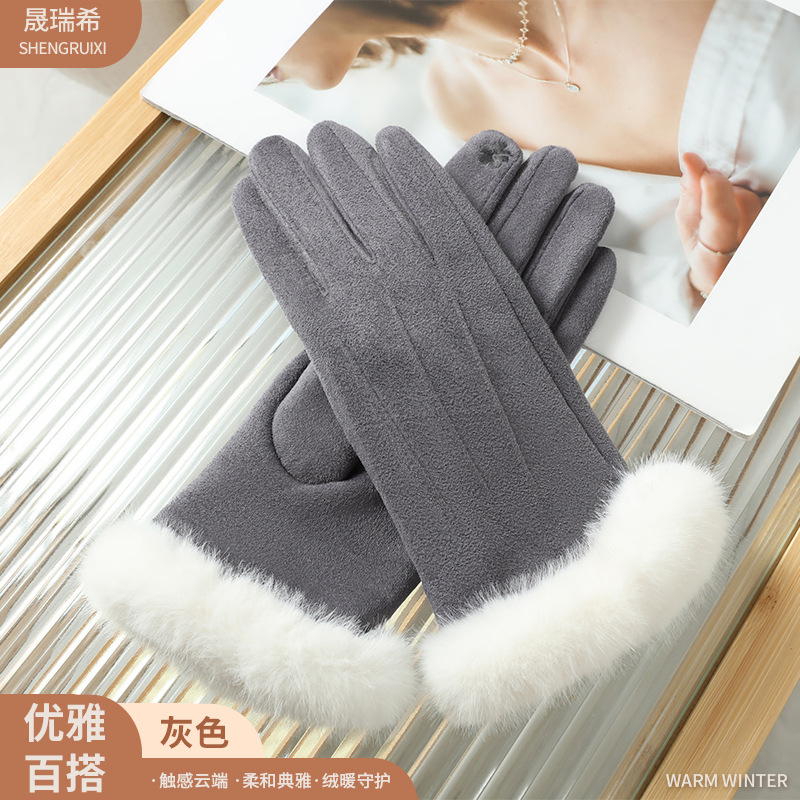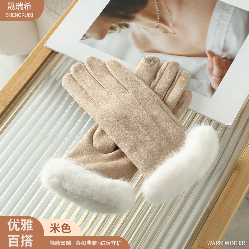 秋冬季保暖手套女士毛绒腕口加绒加厚韩版户外骑车可触屏骑行手套