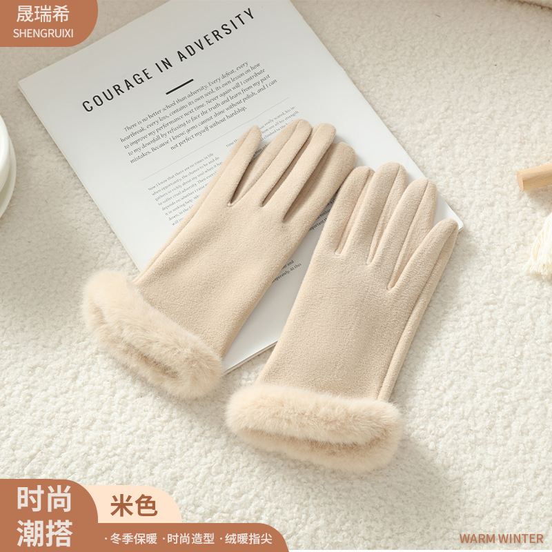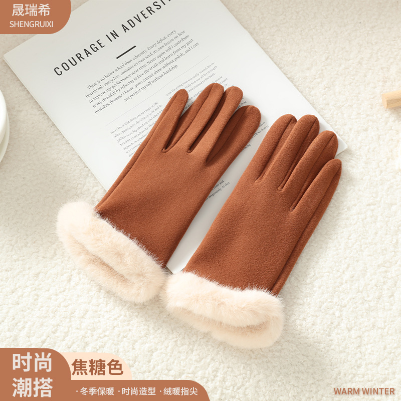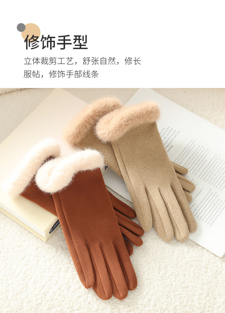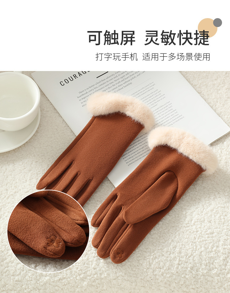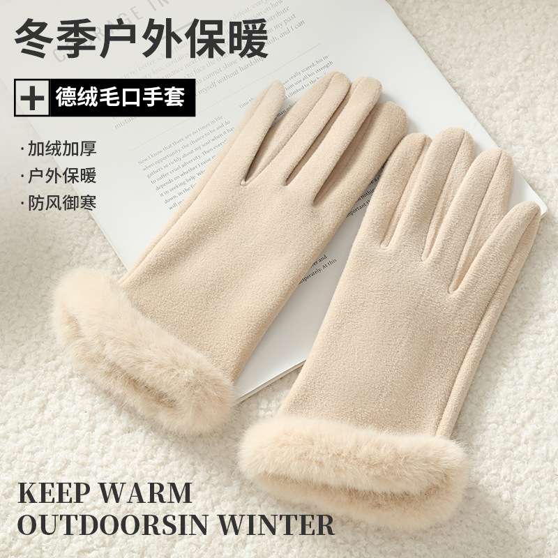 2025新款女秋冬加绒厚保暖手套 自发热骑行批发德绒毛口触屏手套