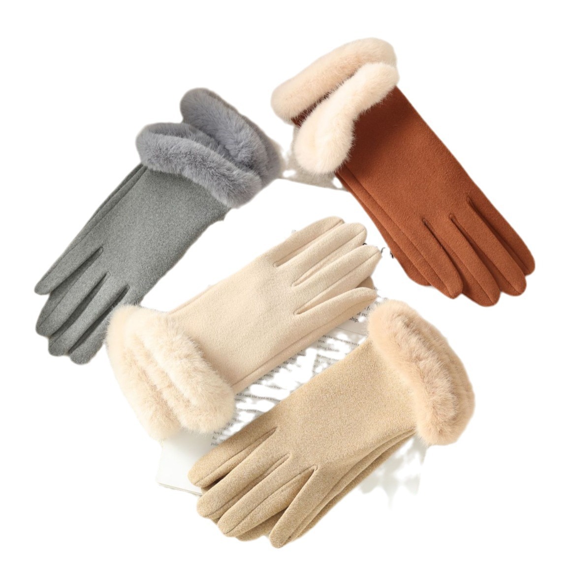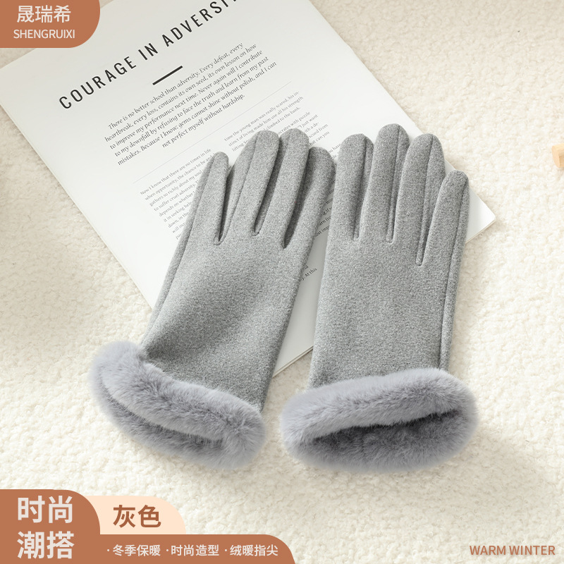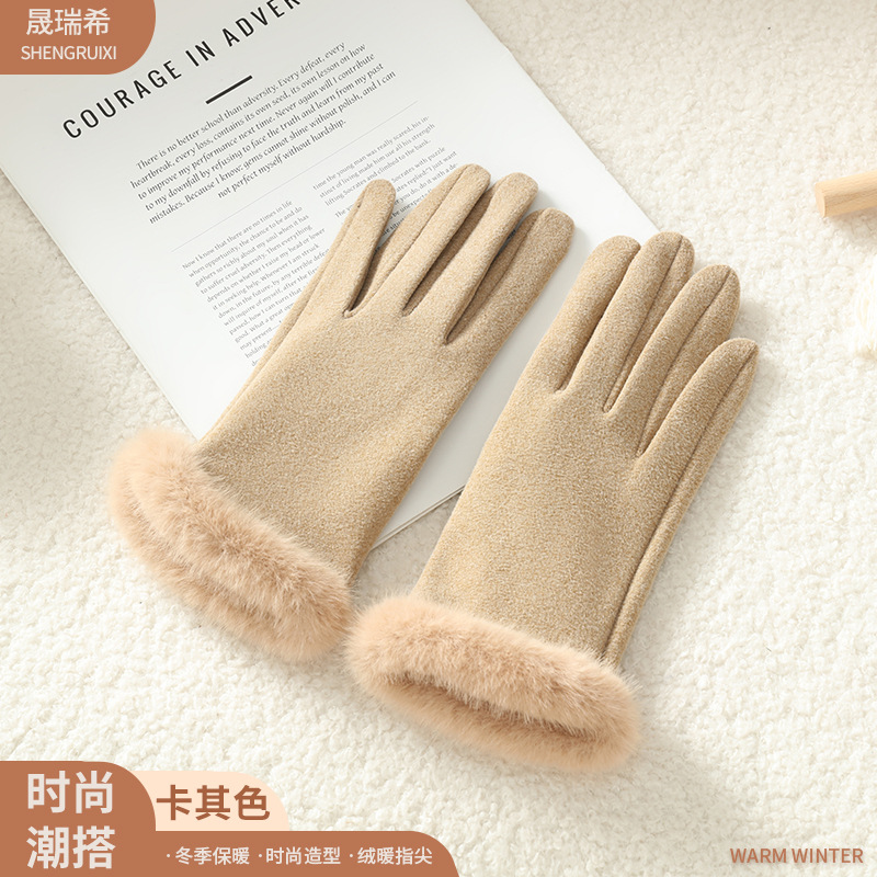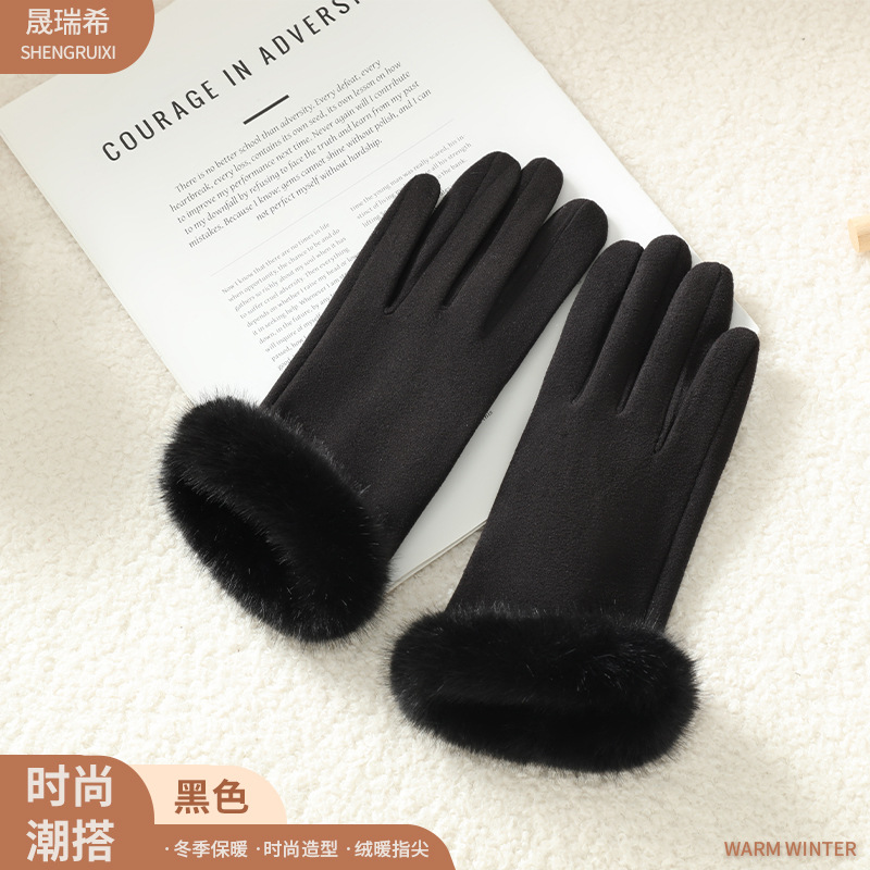 2025新款女秋冬加绒厚保暖手套 自发热骑行批发德绒毛口触屏手套