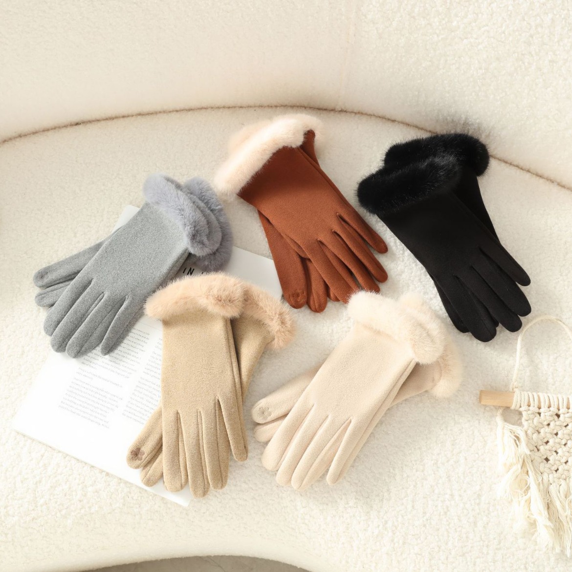 功能: 触屏,保暖,防风 款式: 分指手套 面料名称: 德绒 产品类别: 保暖手套 品牌: 晟瑞希 主面料成分: 涤纶(聚酯纤维) 货号: SR-2402 颜色: 米色,卡其色,焦糖色,灰色,黑色 尺码: 均码 主要下游平台: 淘宝,京东,亚马逊,快手,速卖通,拼多多 有可授权的自有品牌: 否 是否跨境出口专供货源: 否 适合季节: 冬季 上市年份/季节: 2025夏季 产地: 河北 风格: 甜美 主面料成分含量: 61%(含)-70%(含) 风格分类: 清新甜美 处理工艺: 其他 主面料成分2含量: 21%(含)-30%(含)
