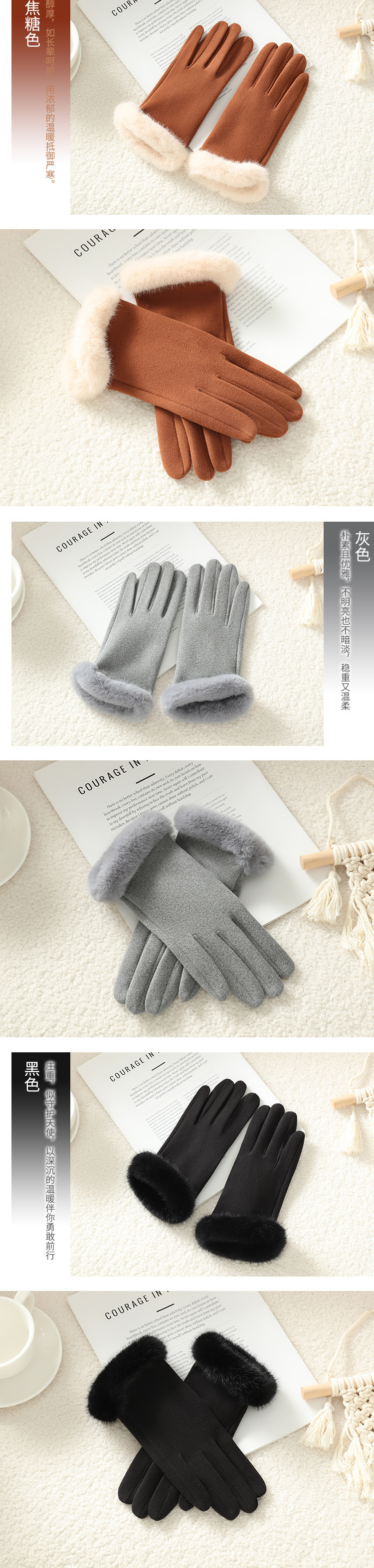 2025新款女秋冬加绒厚保暖手套 自发热骑行批发德绒毛口触屏手套 English | 投诉