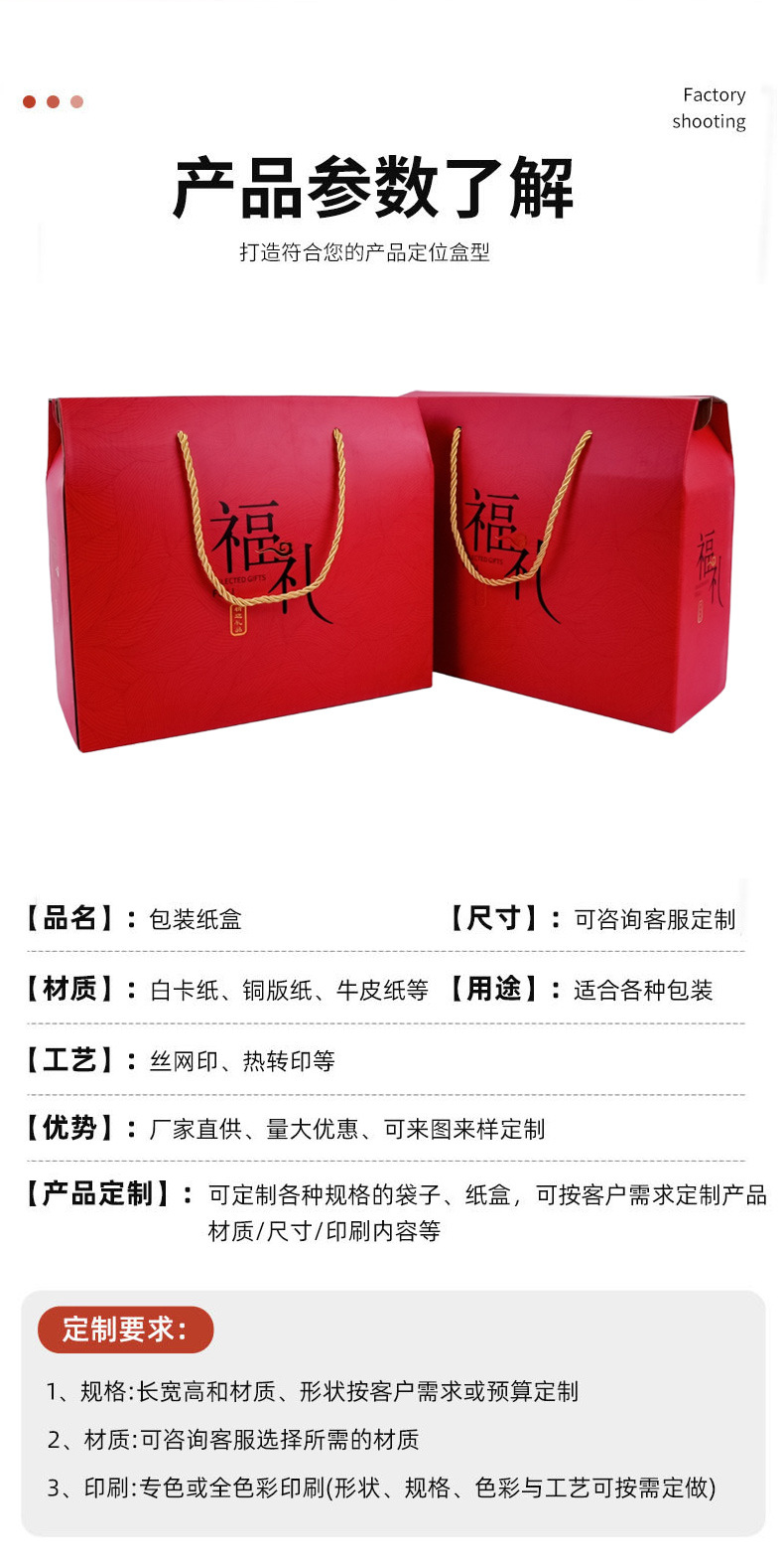 品牌: 盛润 包装层次: 销售包装/终端包装 是否跨境出口专供货源: 是 风格: 商务 误差: 1mm 货号: 福礼 原产国/地区: 中国 材质: 纸/纸板 产地: 河北 有可授权的自有品牌: 否 工艺: 烫印 型号: QW300 重量: 0.291 kg/个