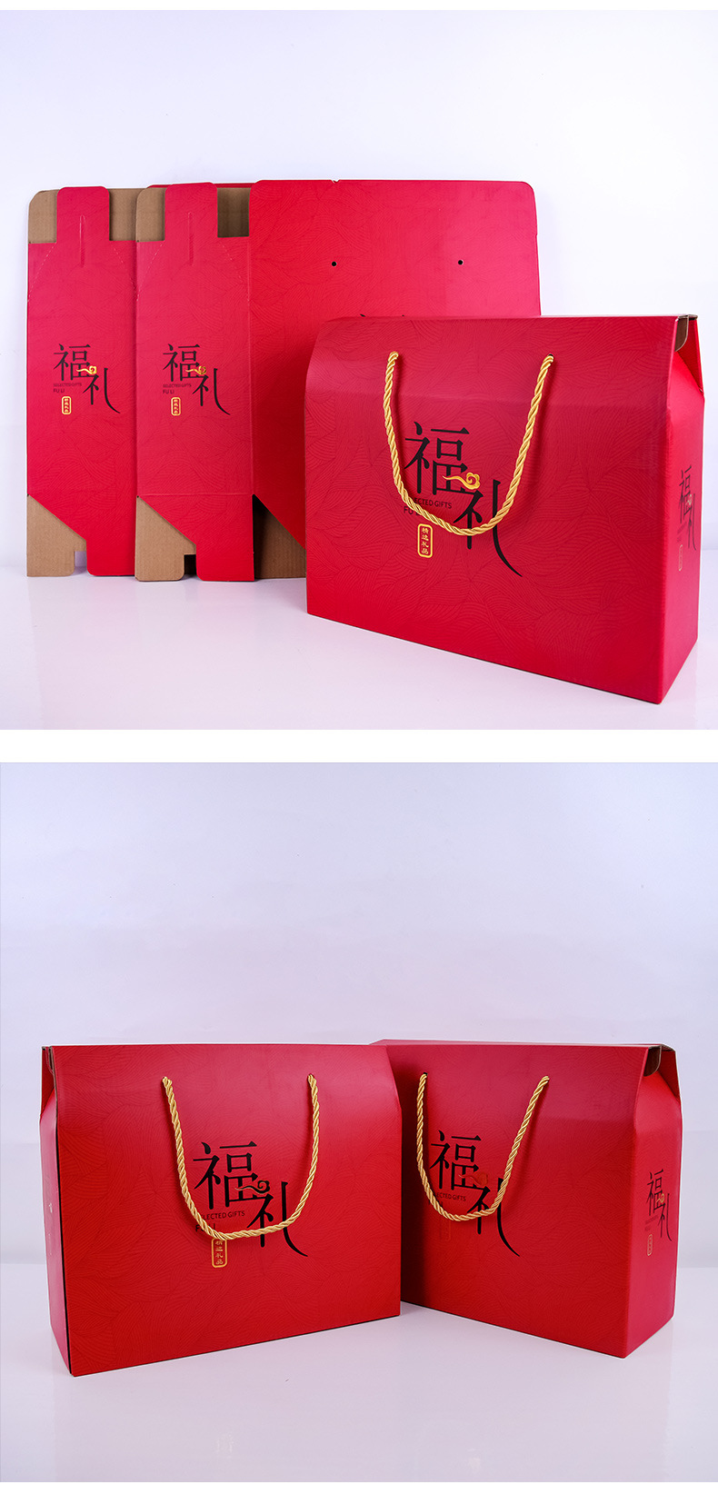 新年年货盒子厂家现货手提加厚空盒伴手礼可印制礼品食品包装礼盒