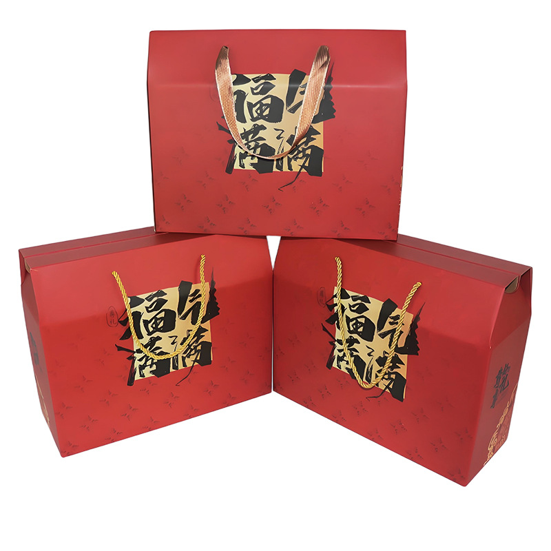 现货红色节日礼盒特产通用包装盒高档手提包装盒送礼年货新年礼盒