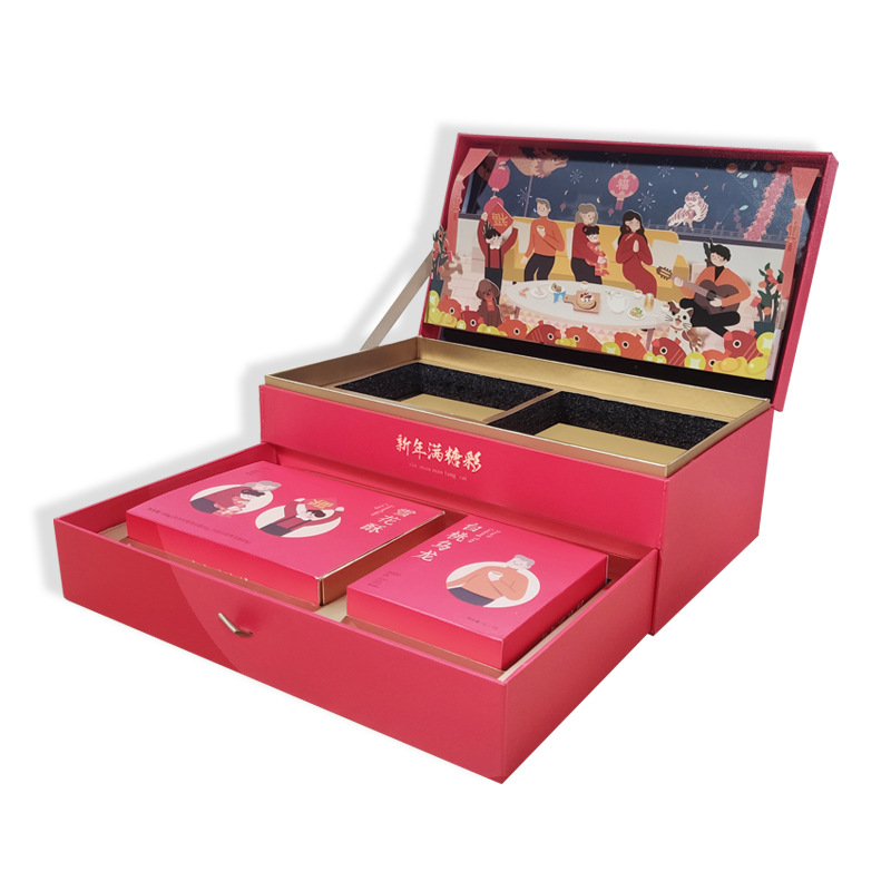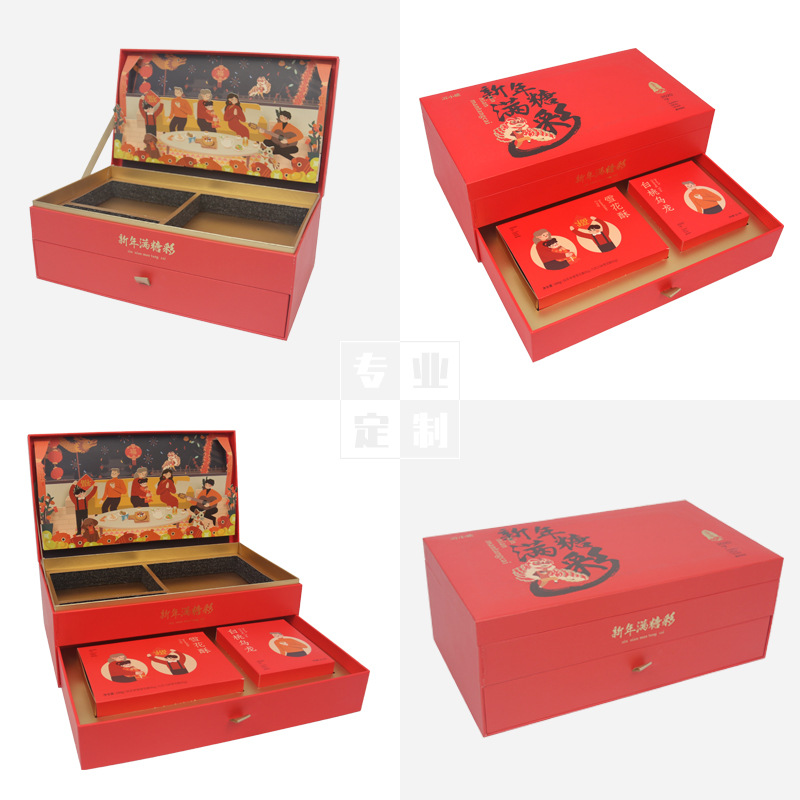 立体国潮风新年礼盒 月饼盒翻盖包装盒盒子 高档伴手礼食品空盒