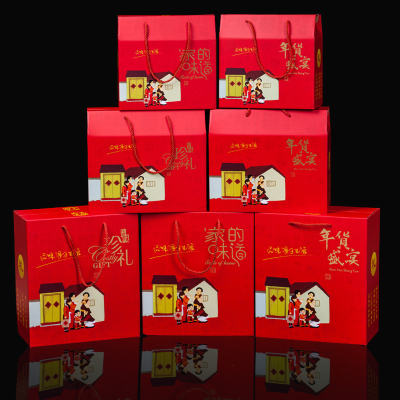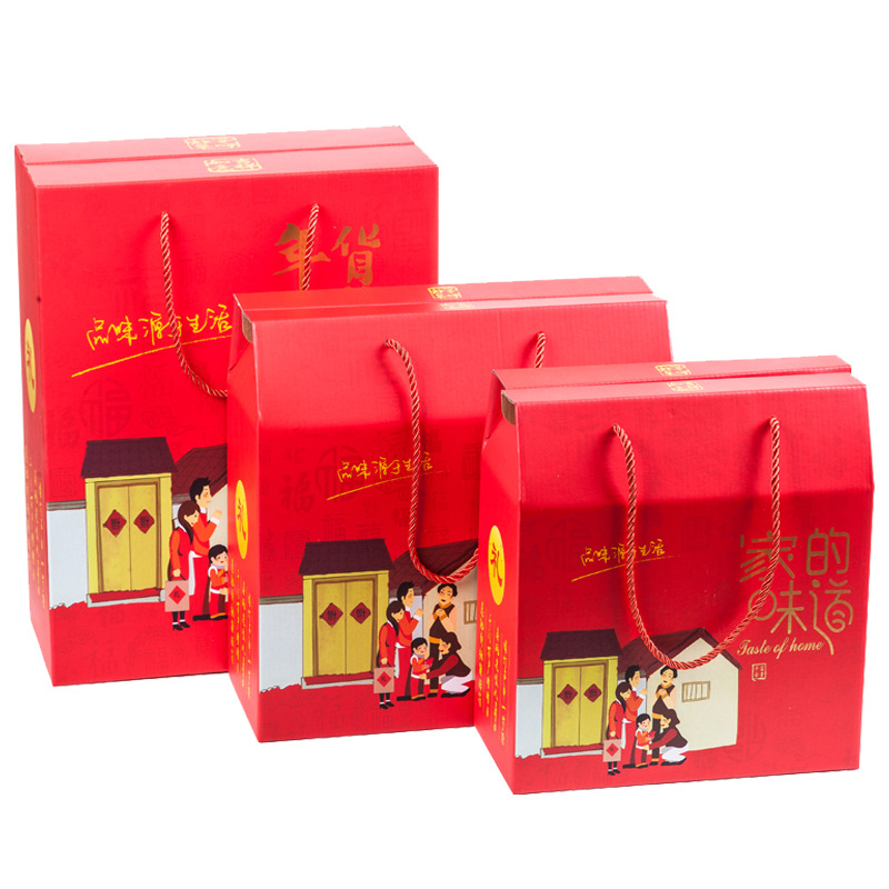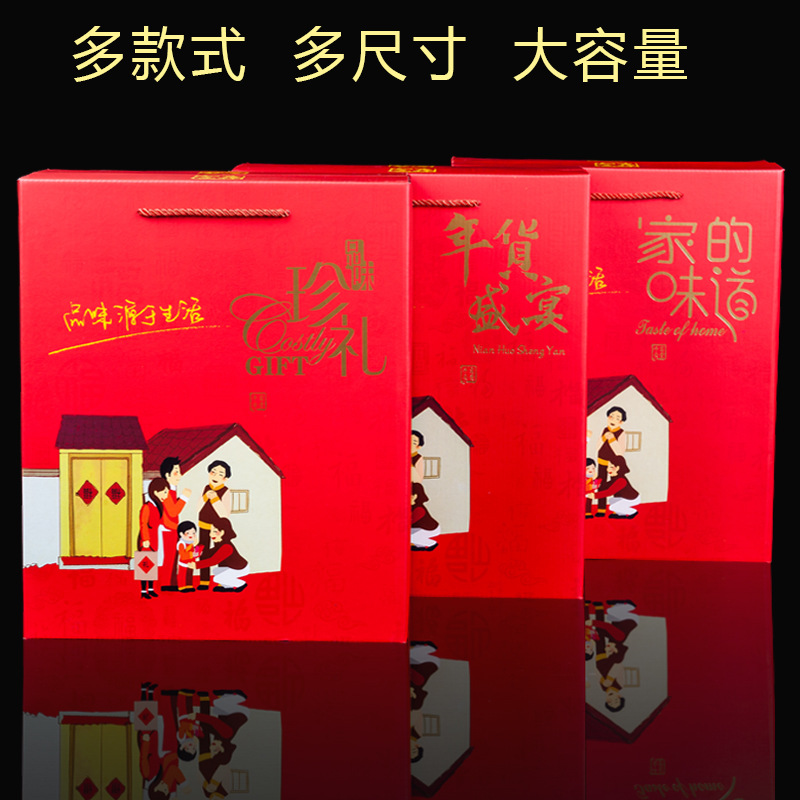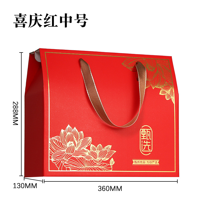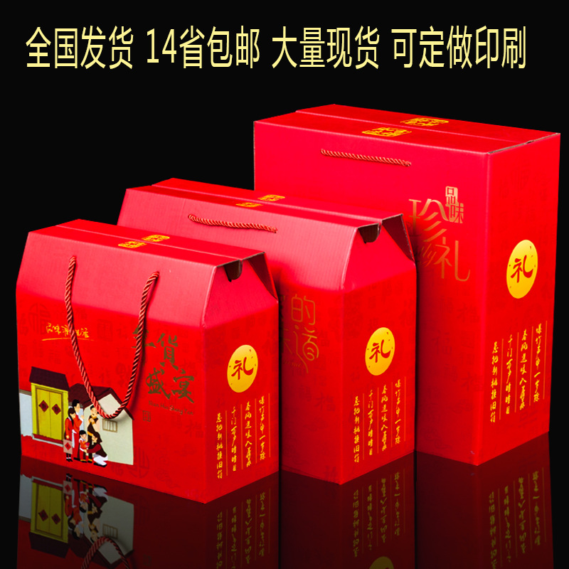 红色新年礼盒现货高档特产包装盒年货礼盒定制零食包装手提礼品盒