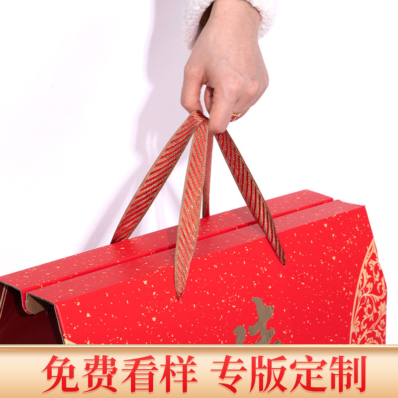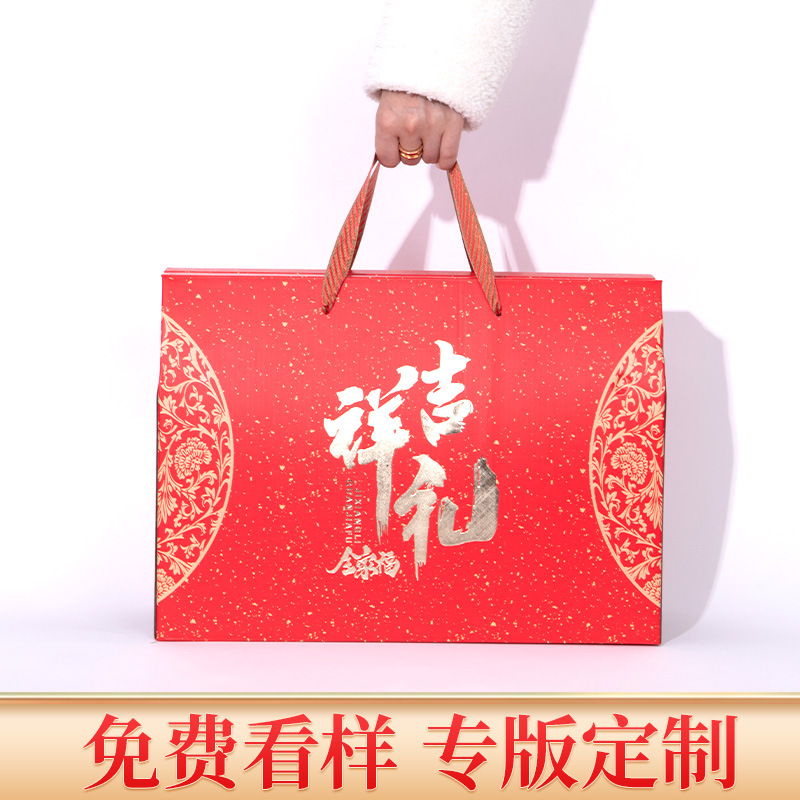 春节礼品盒包装盒吉祥礼坚果饼干盒手提屋顶盒空盒子厂家年货礼盒