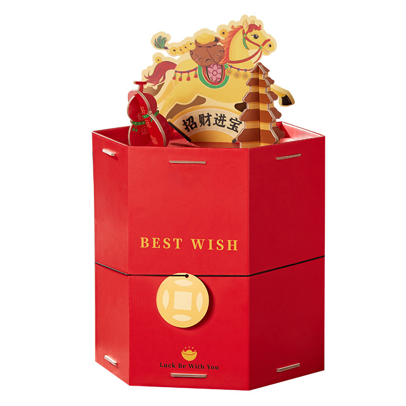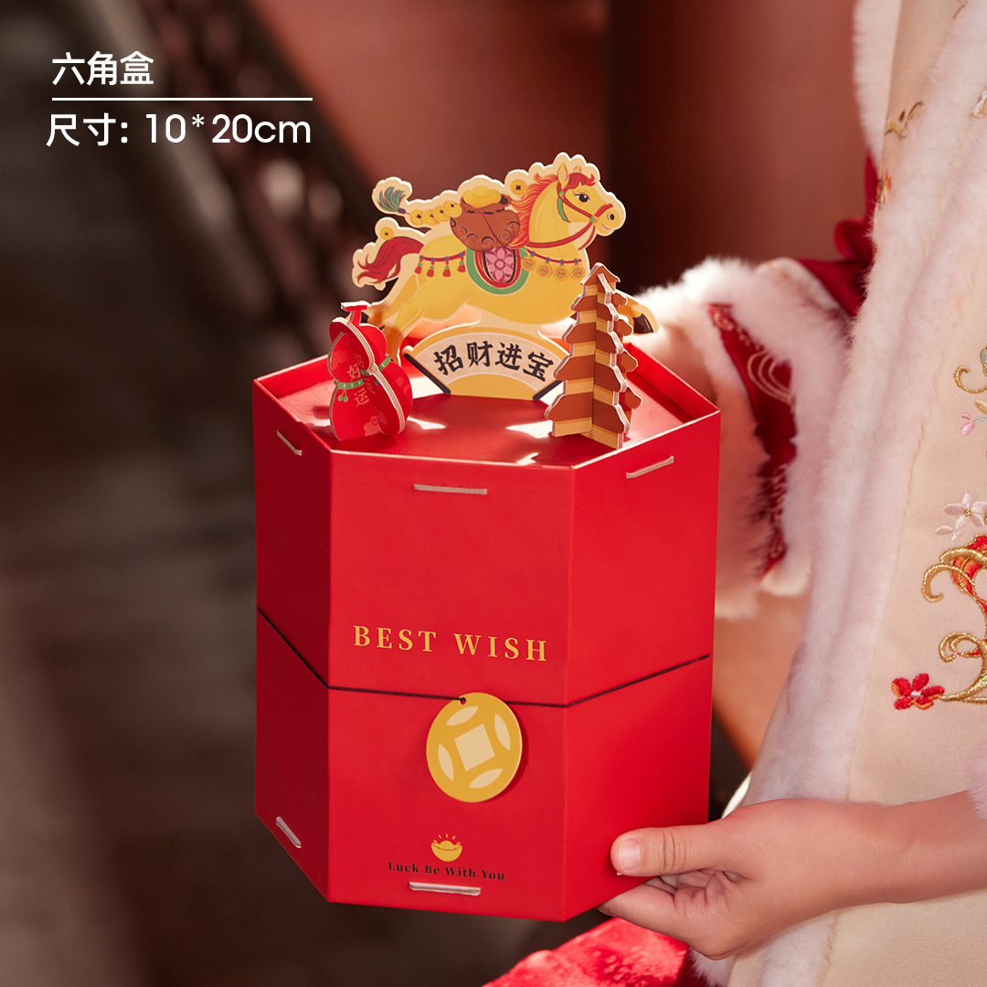 品牌: FUN.SUN.YOUNG/方森园 是否跨境出口专供货源: 是 误差: 0.015 货号: CB26-0016 原产国/地区: 中国 有可授权的自有品牌: 是 颜色: 红色 风格: 中国风 材质: 特种纸 产地: 中国 工艺: 覆膜 承重: 8-10 规格: 招财进宝 盒型: 六角盒 重量: 0.326 kg/包