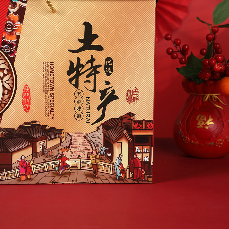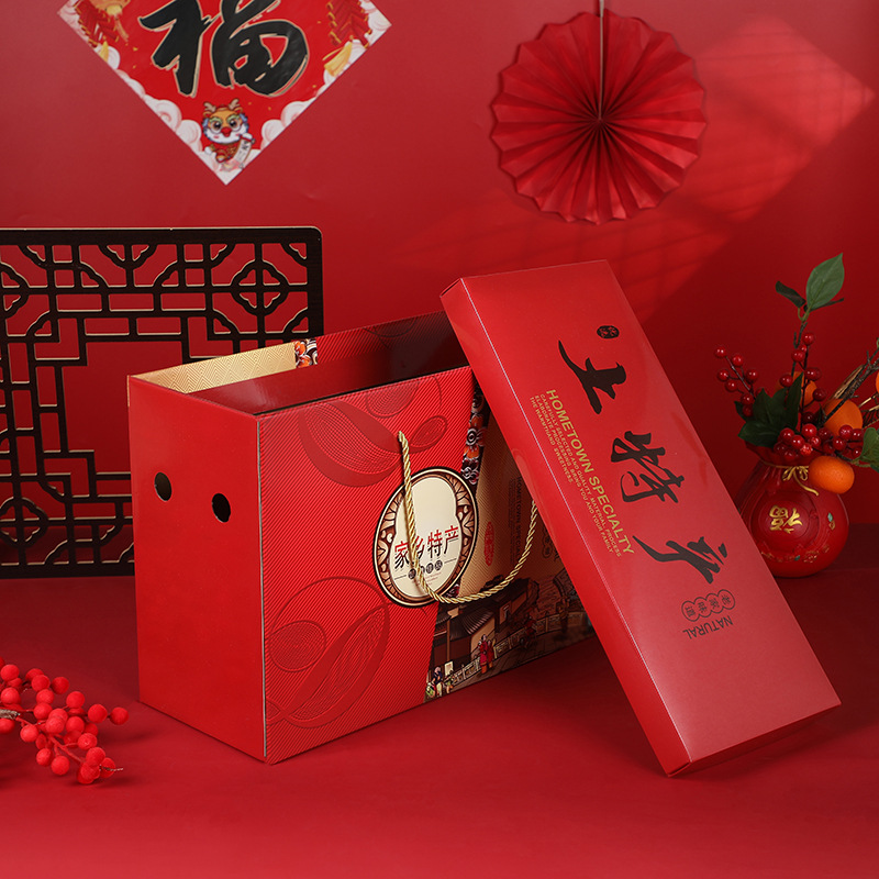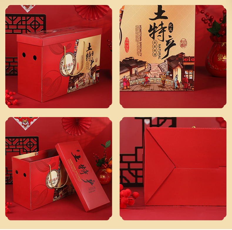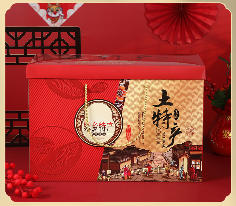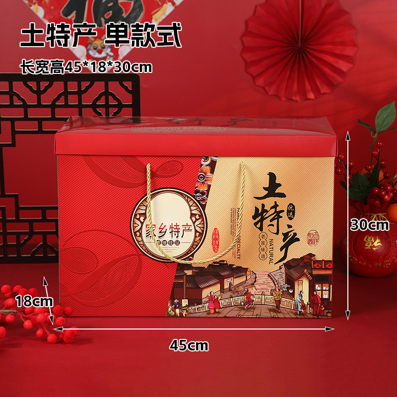 年货礼盒红色大号特产包装盒春节特产坚果干货年货包装盒现货批发