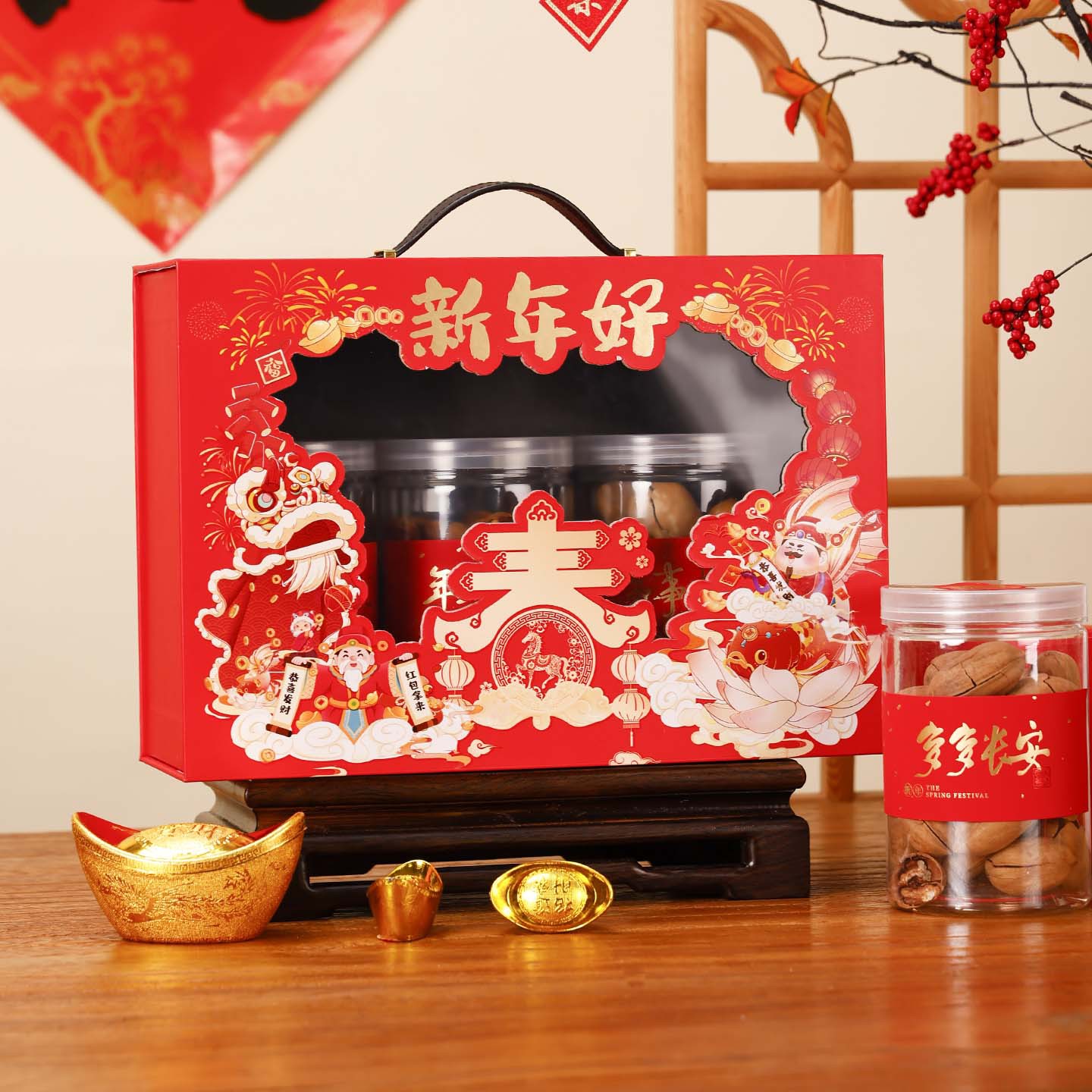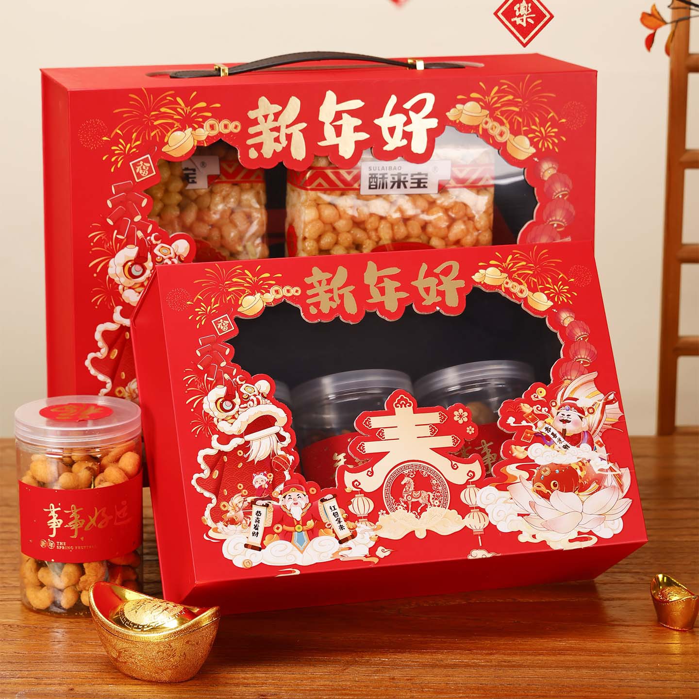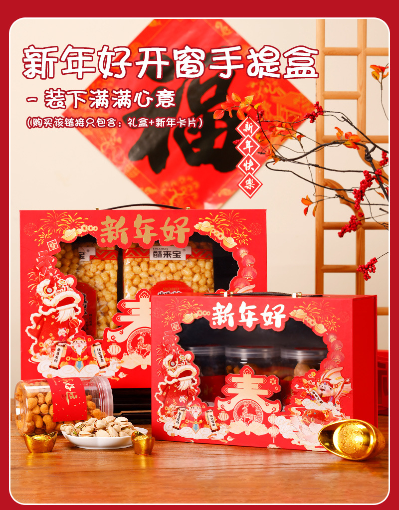 新年礼盒包装高档开窗手提礼品盒零食坚果大礼包送礼空盒春节礼盒