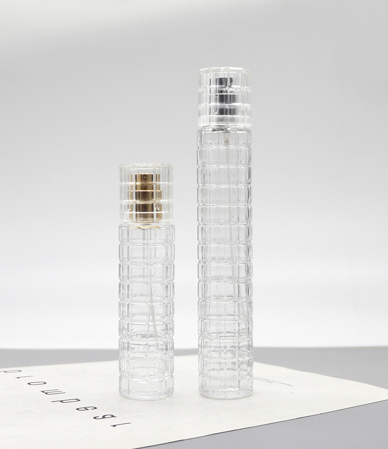 竹节网纹晶白料玻璃香水瓶分装瓶30ml透明喷雾瓶卡口化妆品空瓶子