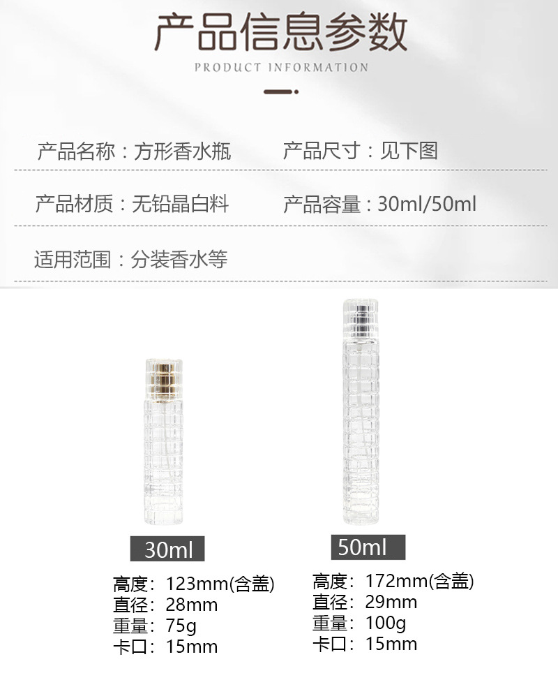 竹节网纹晶白料玻璃香水瓶分装瓶30ml透明喷雾瓶卡口化妆品空瓶子 English | 投诉