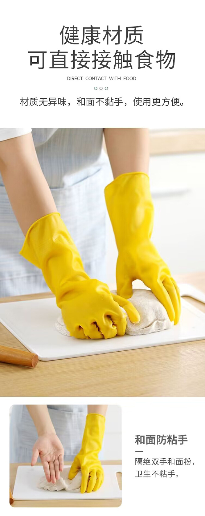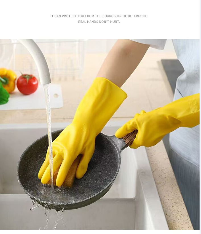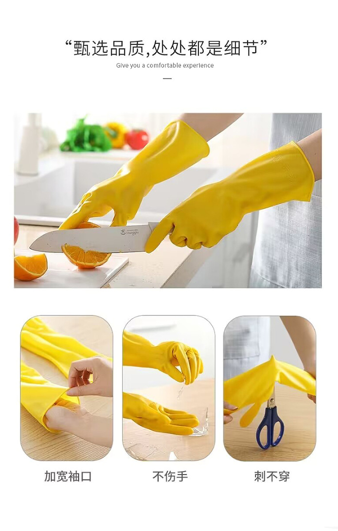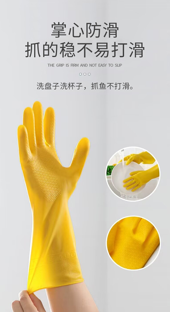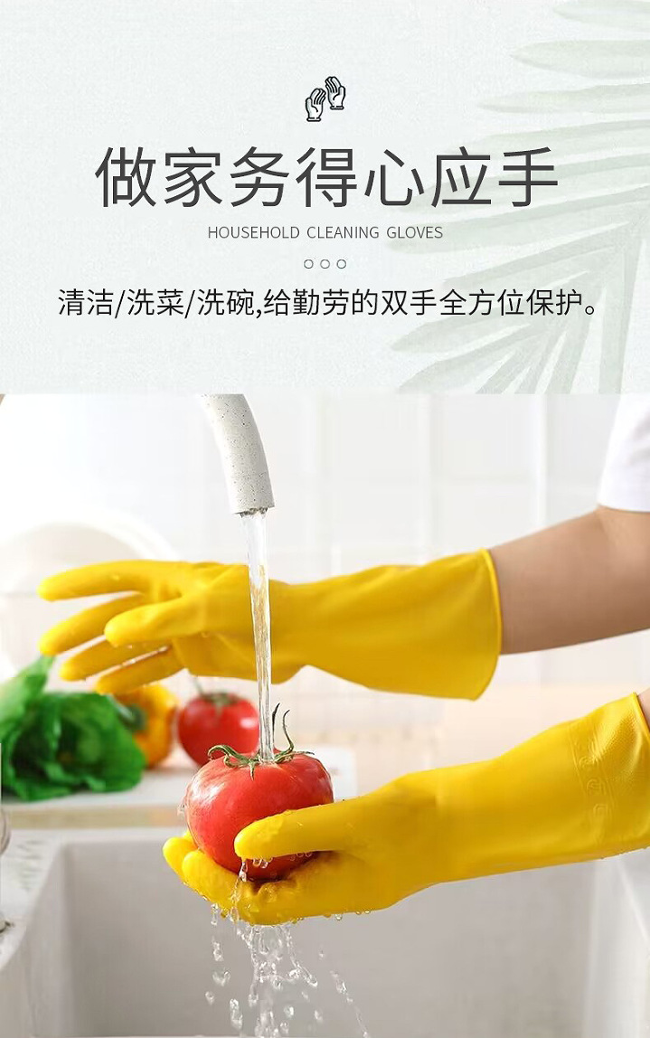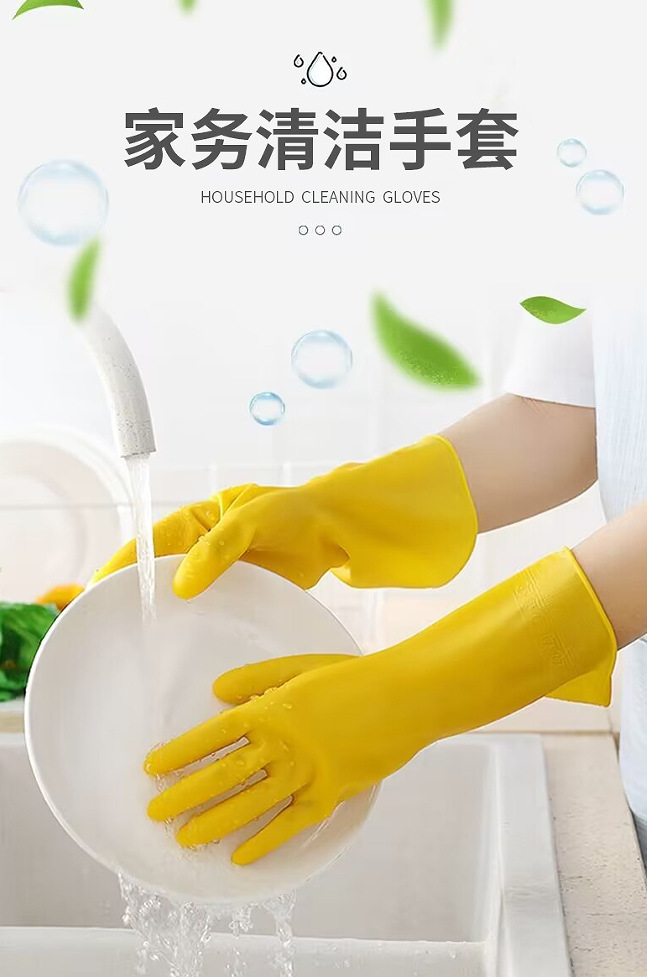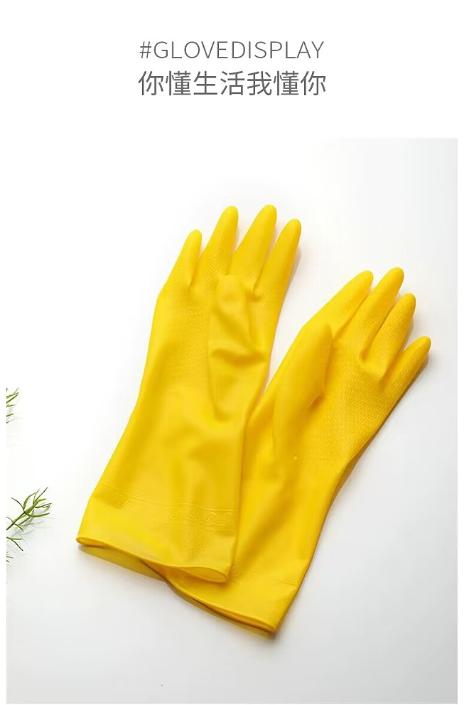 牛筋色塑胶皮劳动防水防油厨房家用清洁洗碗洗衣服干活女家务手套 English | 投诉