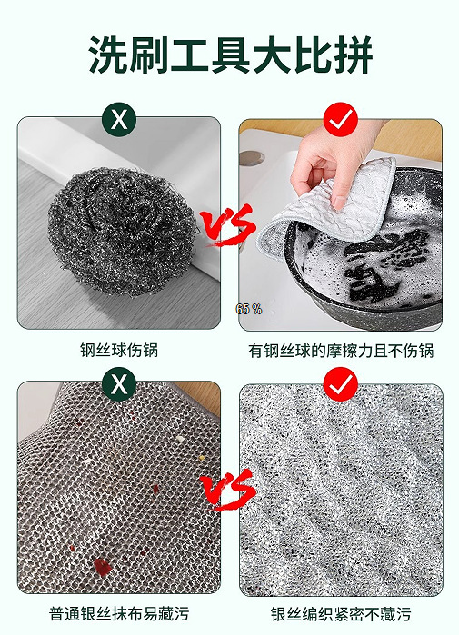 银丝洗碗巾钢丝双面抹布钢丝球厨房用品不沾油网格清洁布加厚抹布 English | 投诉