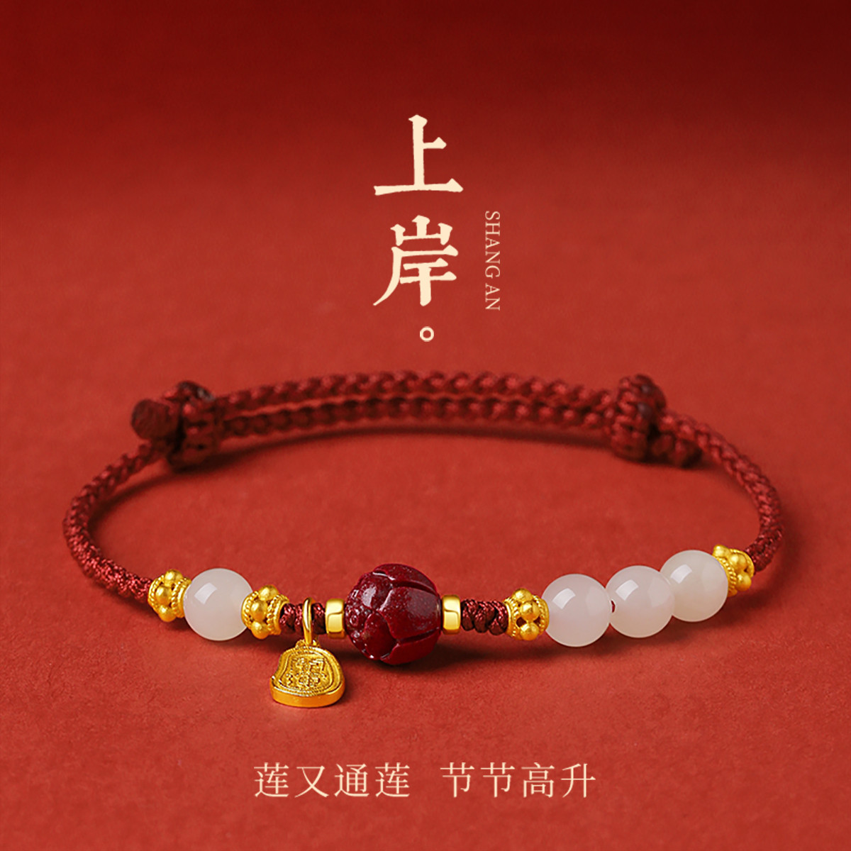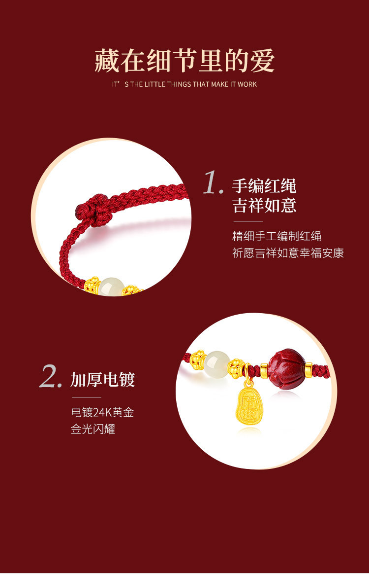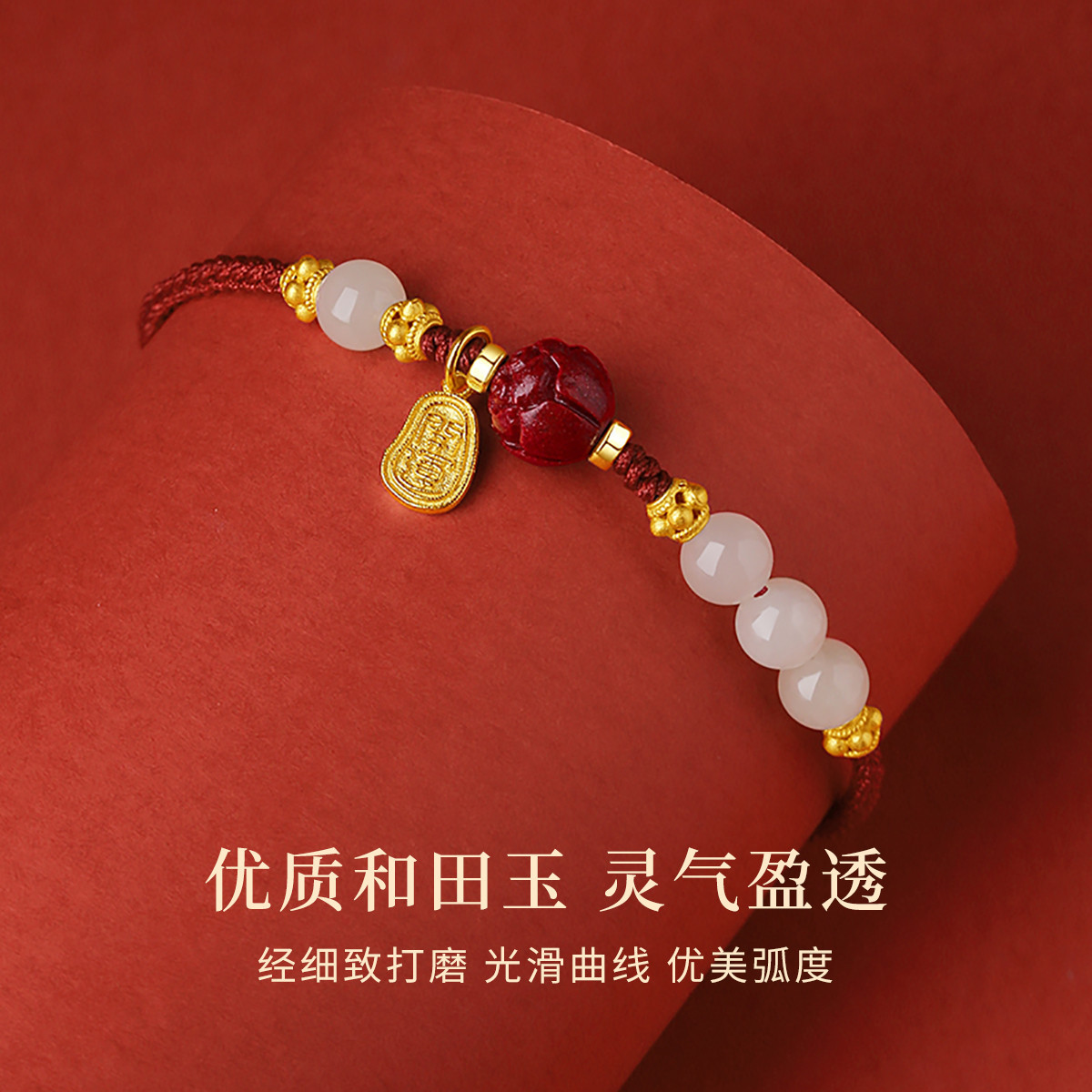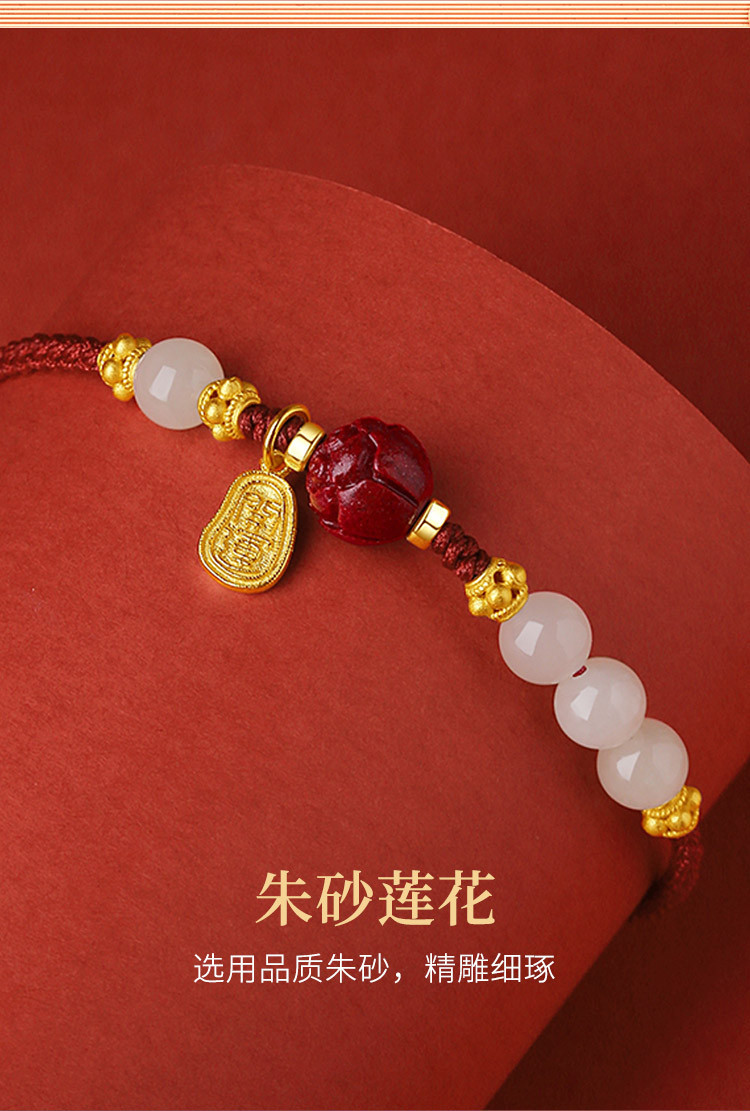 和田玉手链手饰品国潮小福牌设计感手链朋友祝福礼物朱砂红绳手链 English | 投诉
