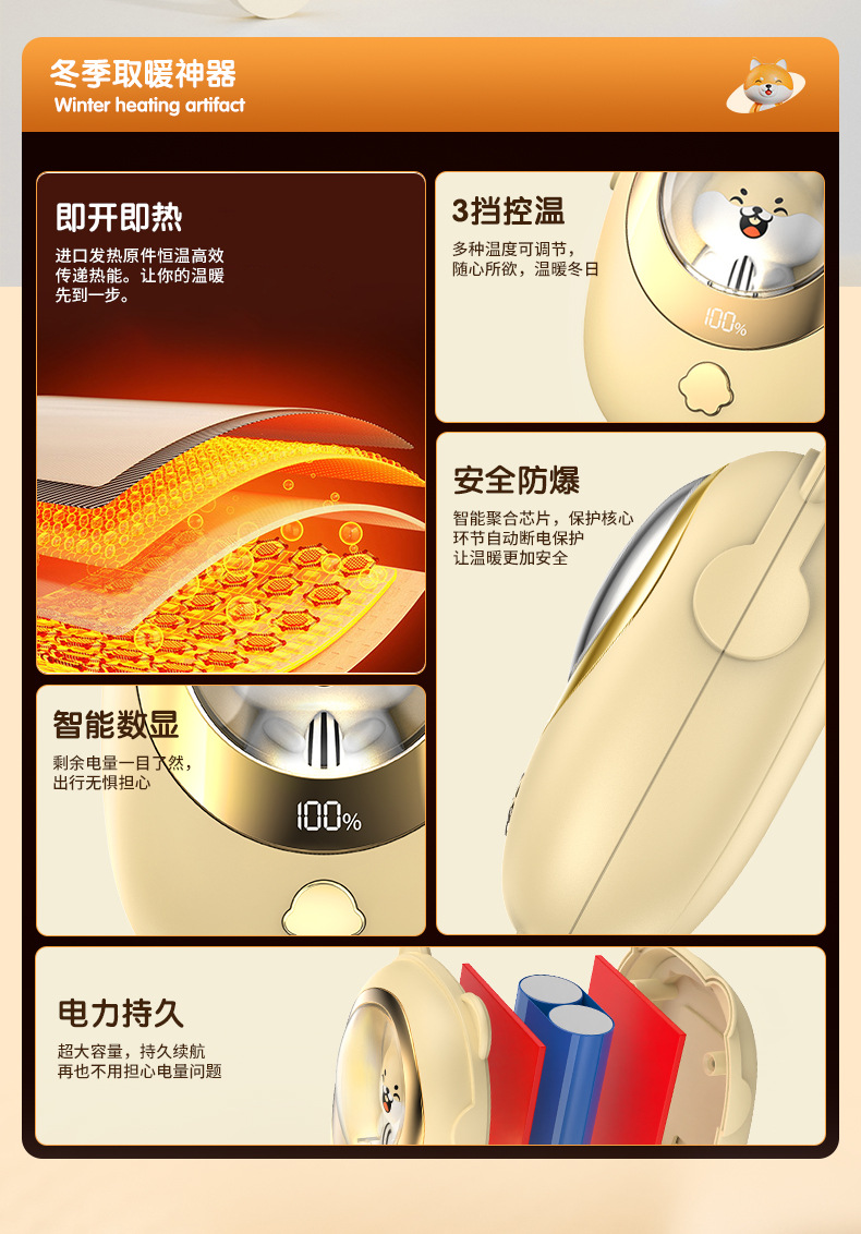 新款暖手宝充电款防爆手握式跨境冬季礼品可爱柯基迷你高颜值猫爪 English | 投诉