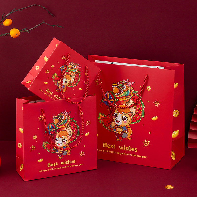 马年礼品袋红色纸袋新年礼物包装袋伴手礼袋春节糖果手提袋元旦袋