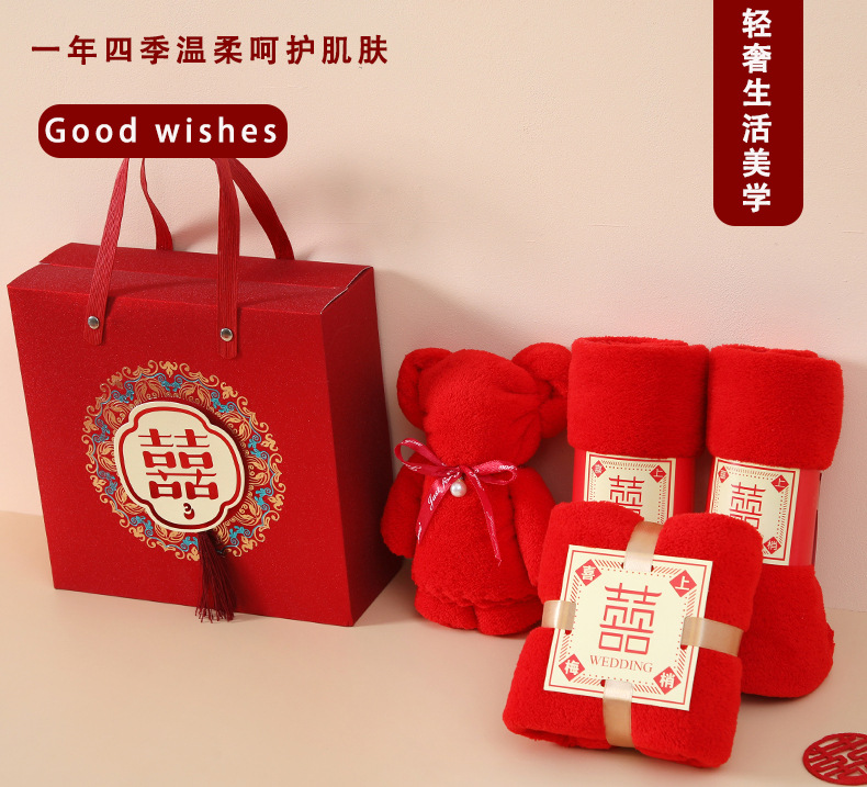 结婚红色毛巾礼品回礼柔软吸水珊瑚绒喜字毛巾礼盒喜铺伴手礼 English | 投诉