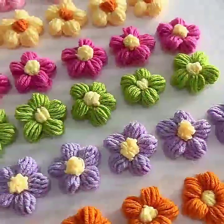 手工毛线花朵泡芙花成品钩针小花diy编织多色彩色服装帽子配饰 English | 投诉