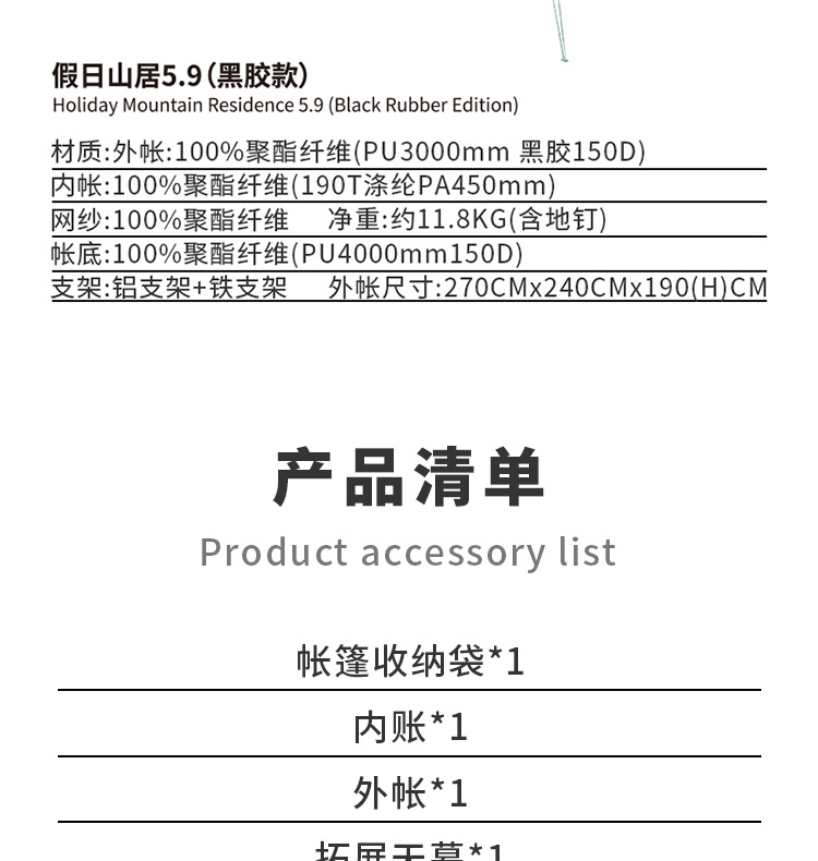 品名:假日山居5.9(黑胶款)