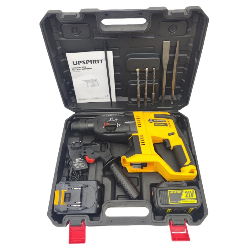 品牌: UPSPIRIT 额定电压范围: 0-21v 标准附件: 塑盒+副手柄+深度尺+2凿+3钻 是否正反转: 是 类型: 轻型电锤 电源电压: 21 适用范围: 混凝土打孔,水泥钻墙,冲击破碎 系列: 28锂电电锤 电锤模式: 电钻/电锤/电镐三用 重量: 5.9 最佳钻孔范围: 2 电源类型: 充电式-锂电 是否带离合器: 是 重量: 2.0 kg/台