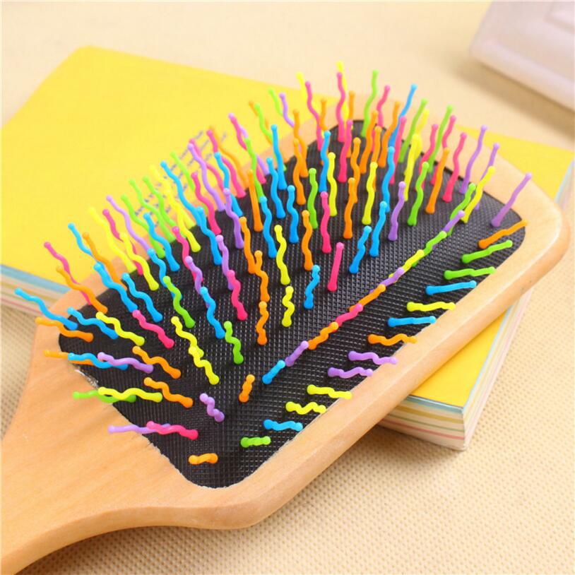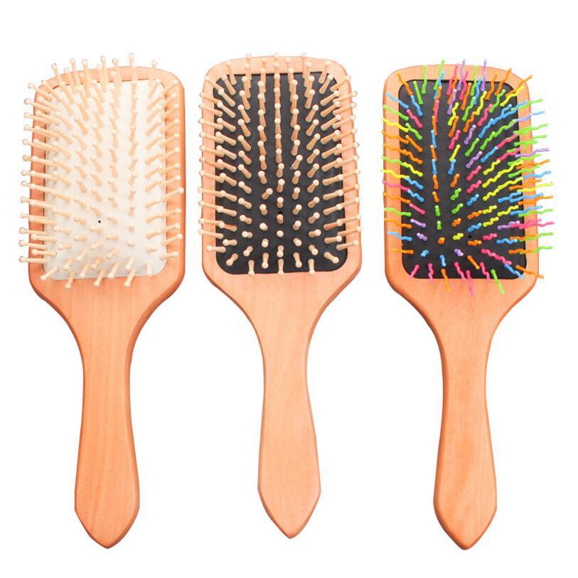 实木方形长柄气囊按摩梳防静电弹力按压美发梳子木质手柄定logE18