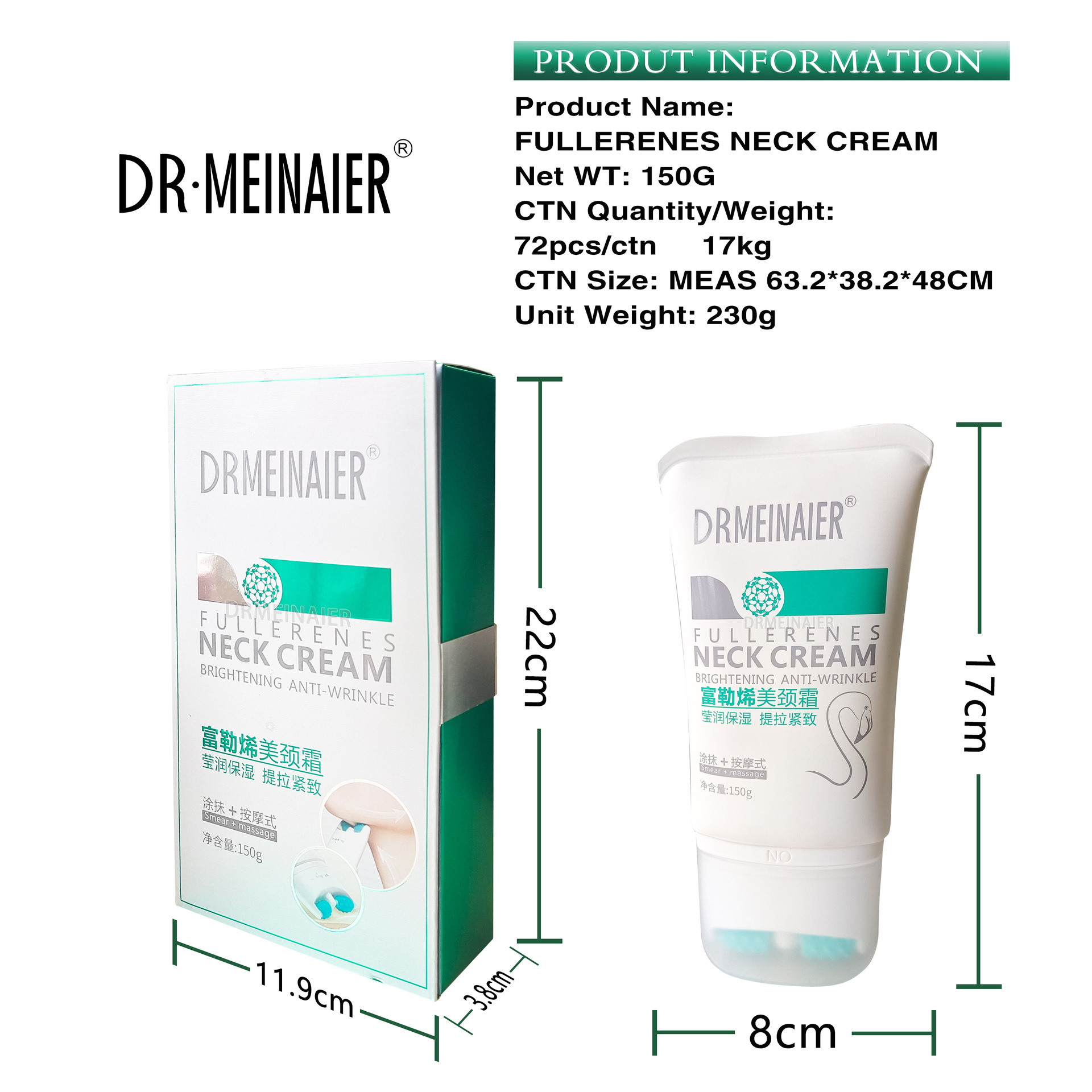 产品名称: 富勒烯美颈霜 品牌:DRMEINAIER