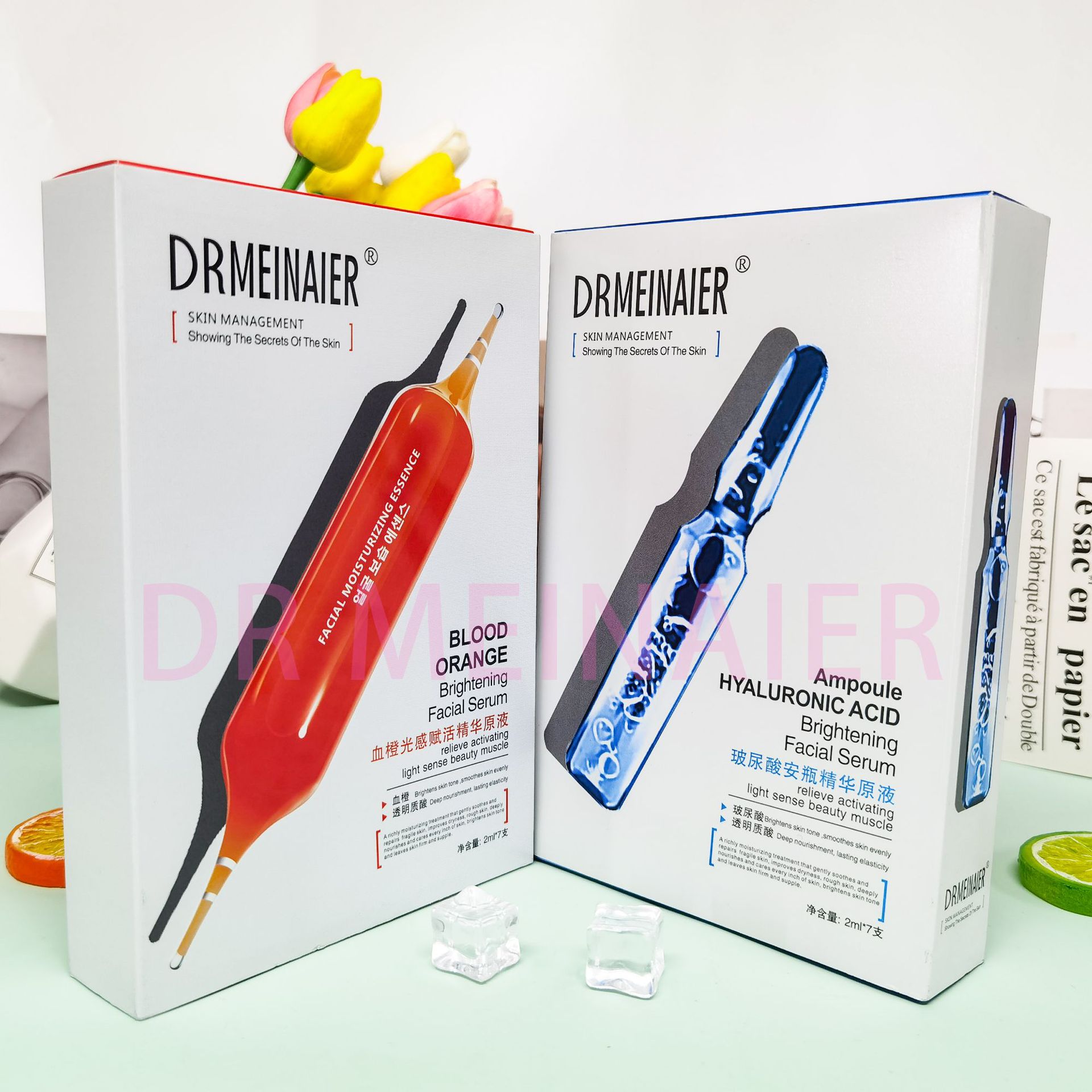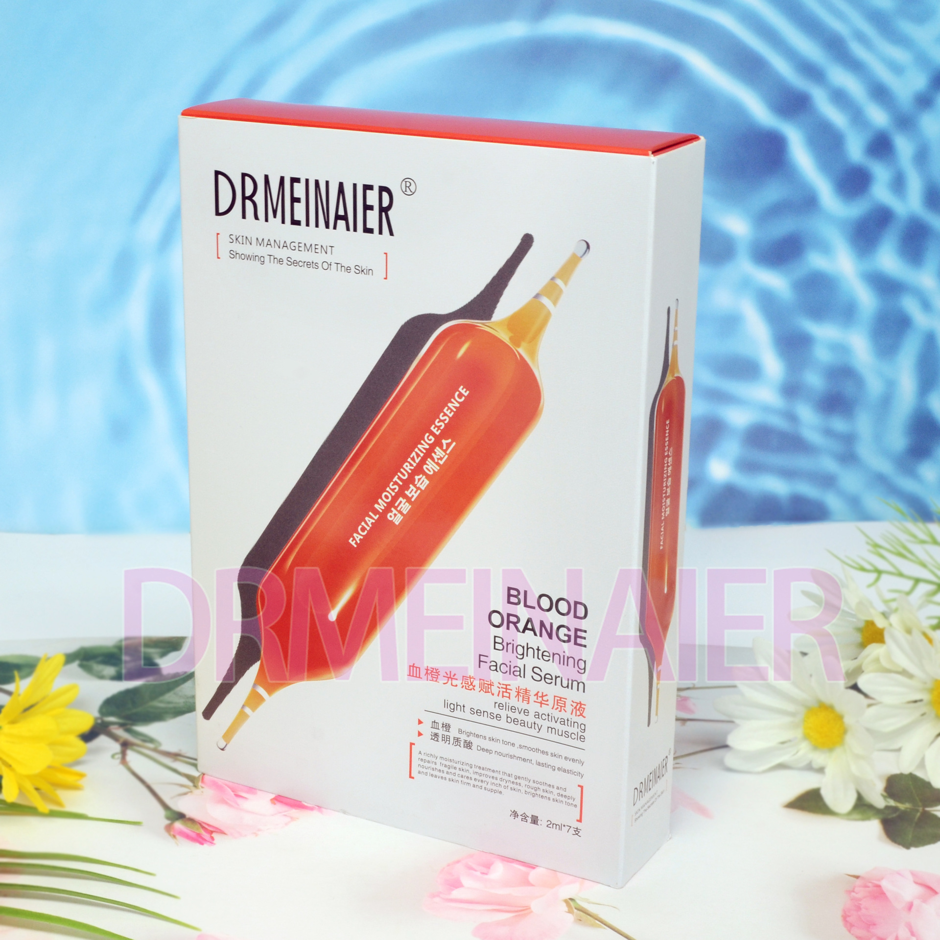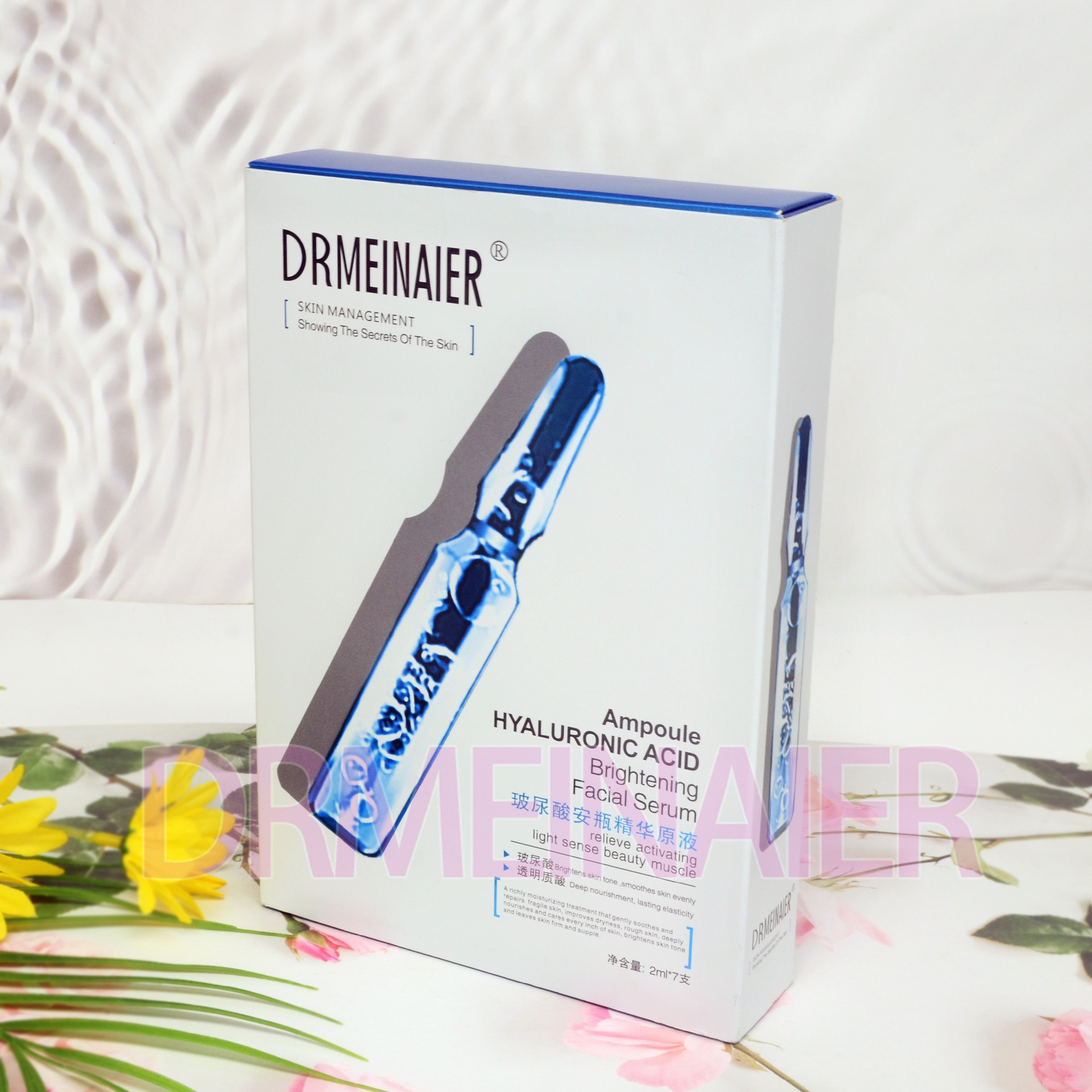 产品名称 2ml*7支安瓶精浓缩原液 品牌:DRMEINAIER单品毛重 100g 净含量2ml*7装箱规格 72pcs/ctns 箱重25kg箱单品尺寸 20*14*3.5装箱尺寸 MEAS 57.9*44.6*42cm包装:如图 可按客户需求来订做