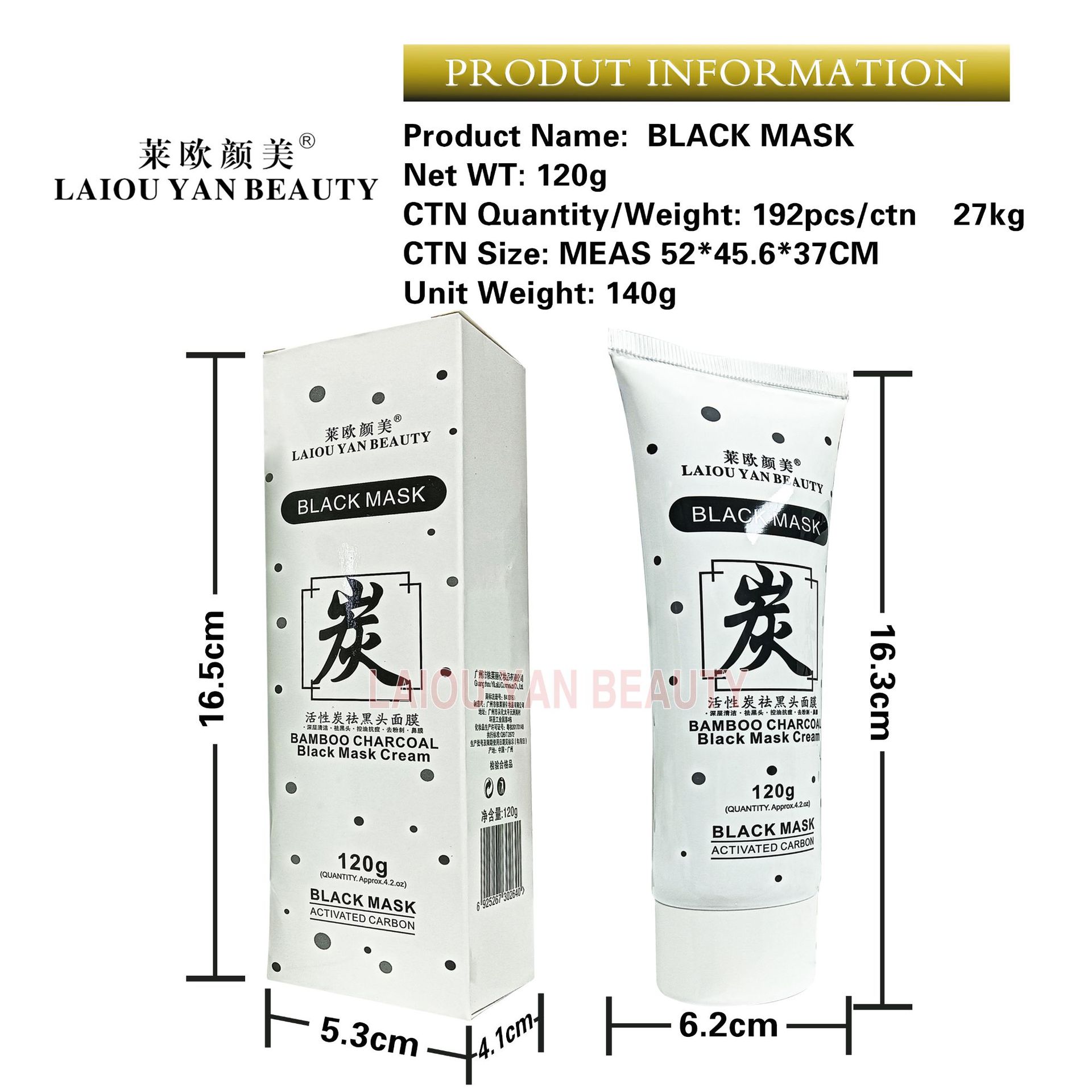 产品名称:120g竹炭祛黑头鼻膜 品牌:莱欧颜美单品毛重 140g 净含量:120g装箱规格 192pcs/ctns 箱重27kg箱单品尺寸 16.5*4.1*5.3 16.3*6.2cm装箱尺寸 MEAS 52*45.6*37CM