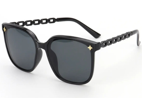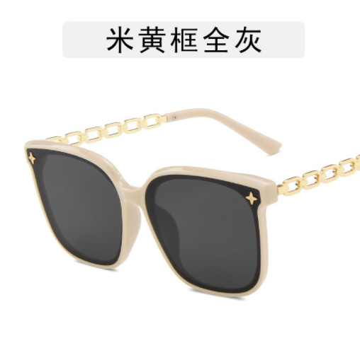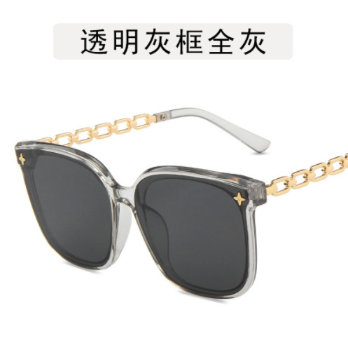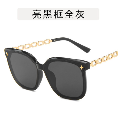 高级感墨镜女款显脸小2024新款 链条腿星星太阳眼镜大脸显瘦黑色