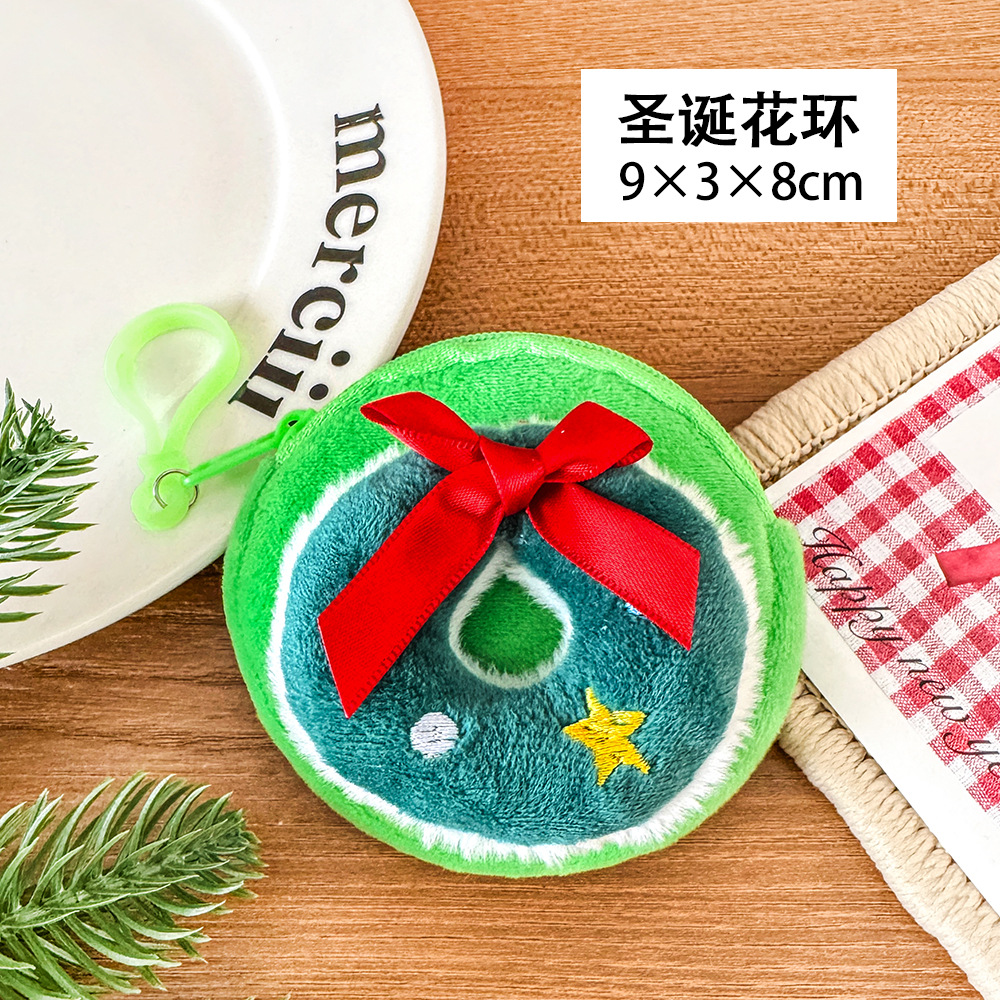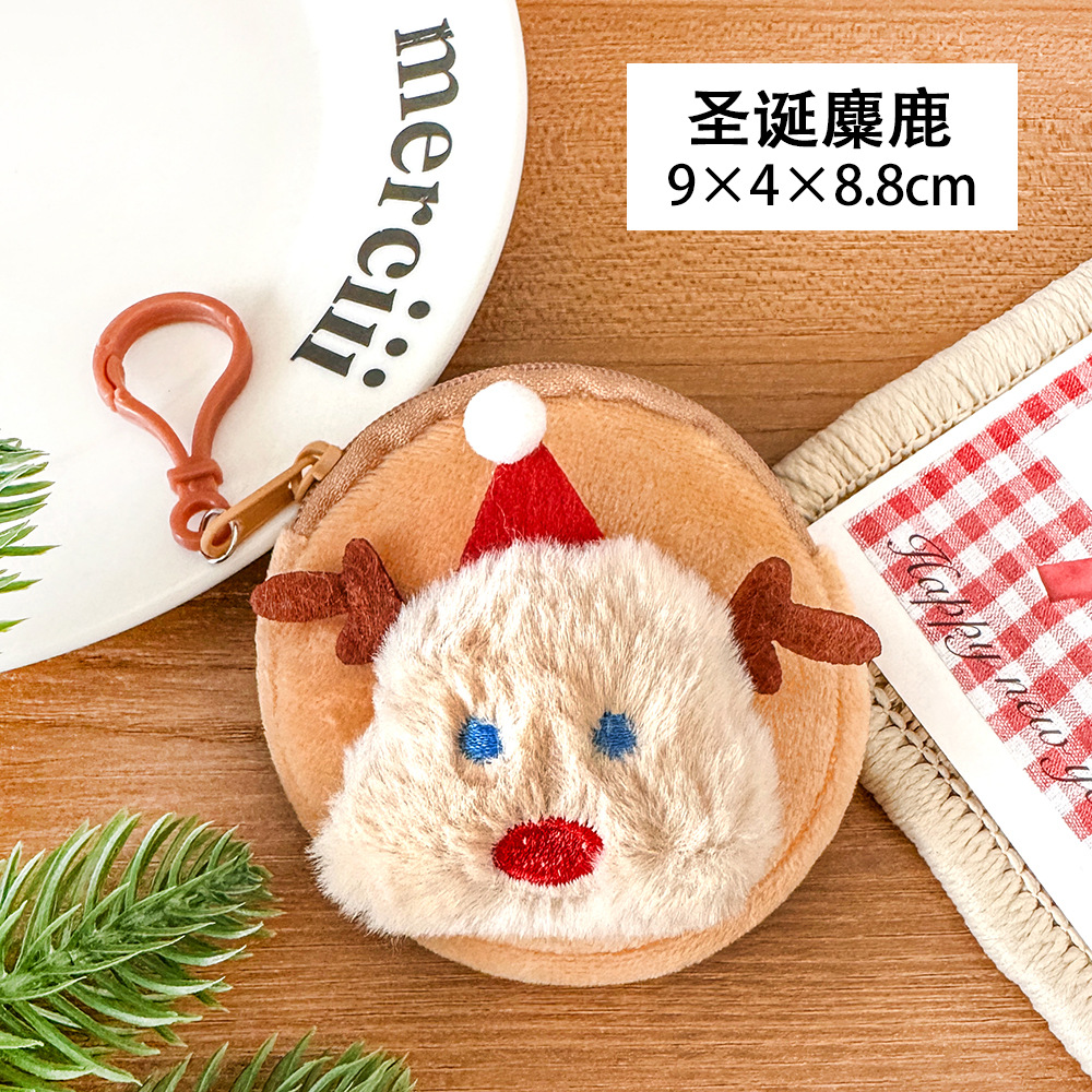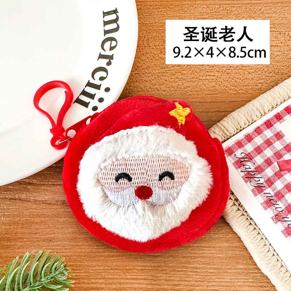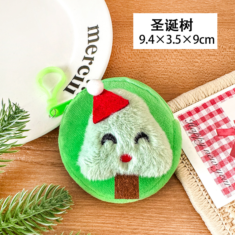 卡通圣诞零钱包毛绒迷你小包可挂儿童硬币收纳包学生圣诞节耳机包