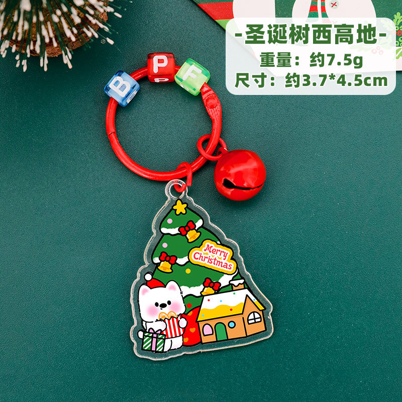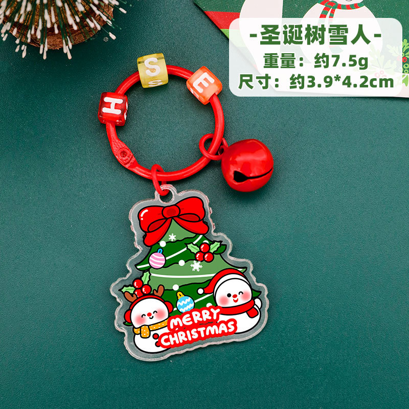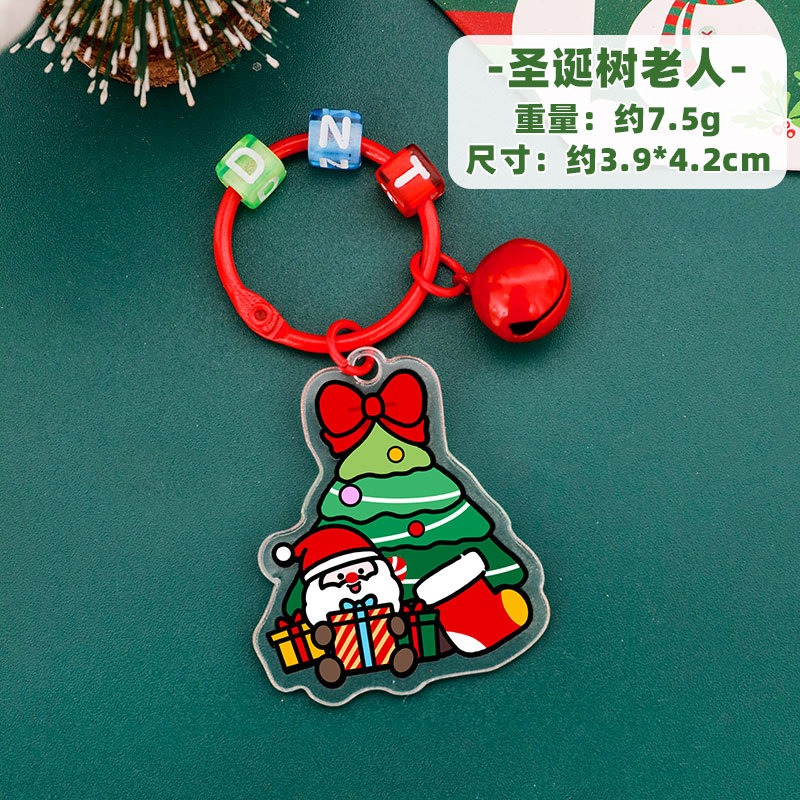 圣诞树铃铛钥匙扣亚克力钥匙圈挂饰学生圣诞节文具奖励小礼品挂件