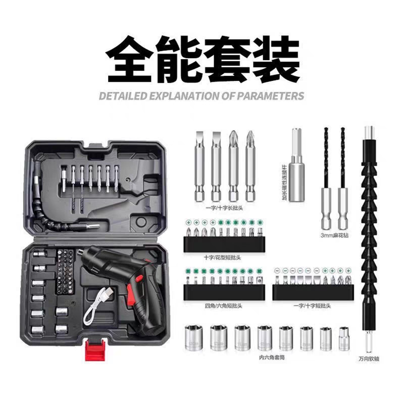 多功能电动螺丝刀充电式家用电起子工具套装锂电手电钻螺丝批组 English | 投诉