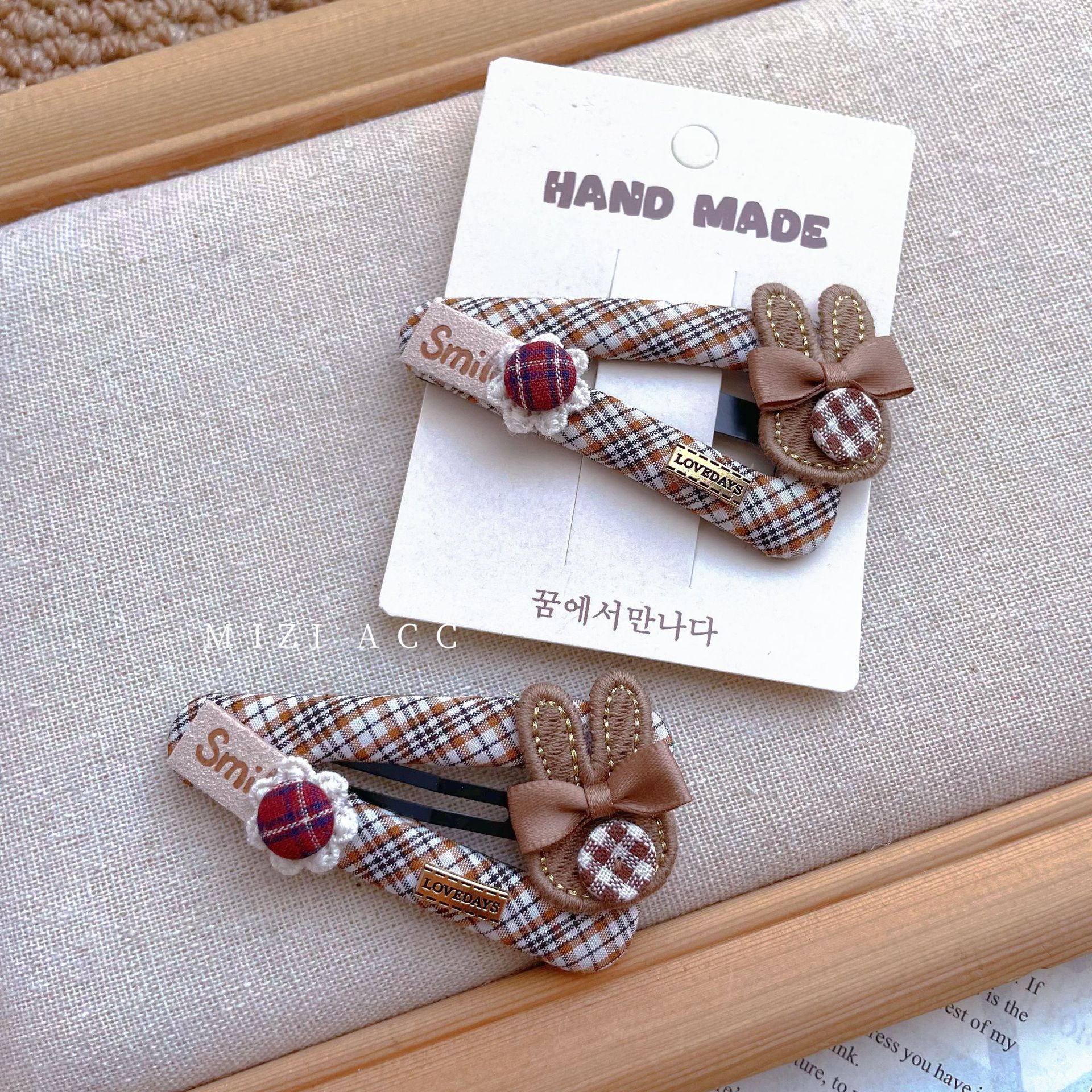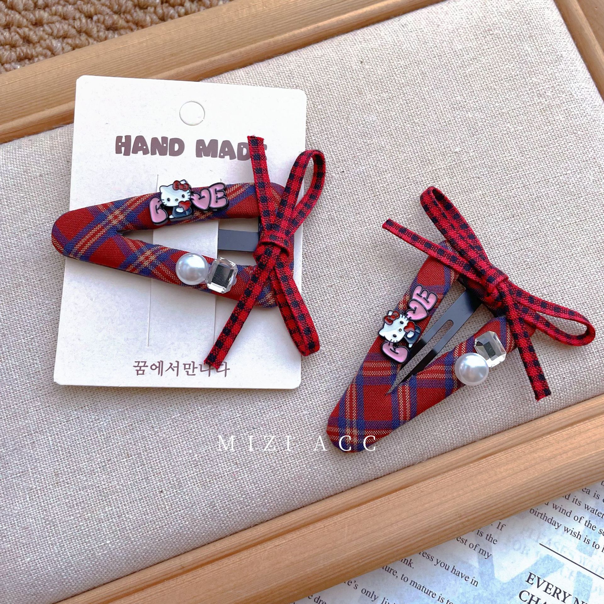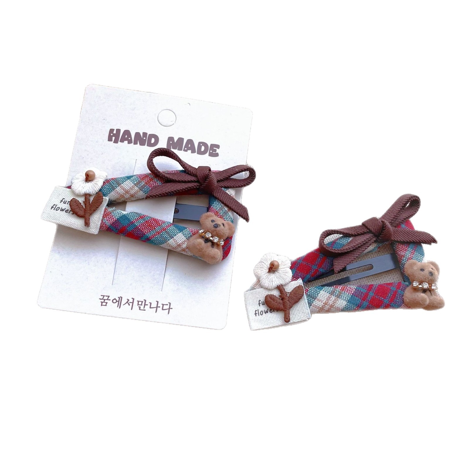 韩系格纹卡通纽扣发夹蝴蝶结字母BB夹学院风复古百搭刘海发饰发夹 English | 投诉