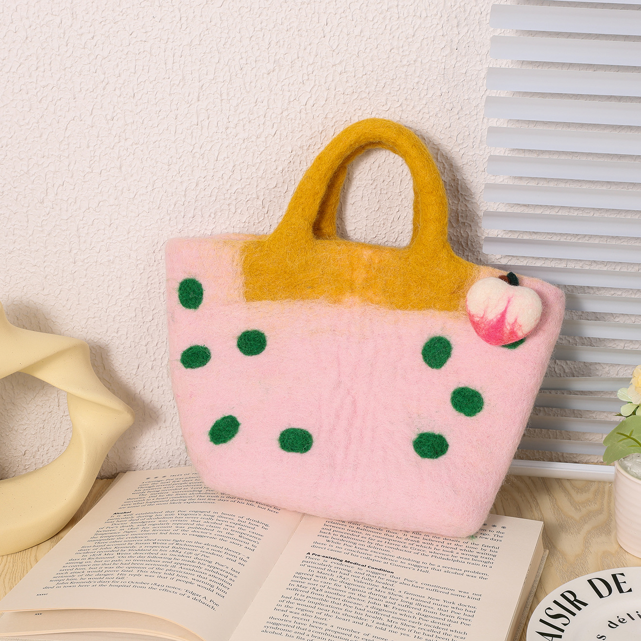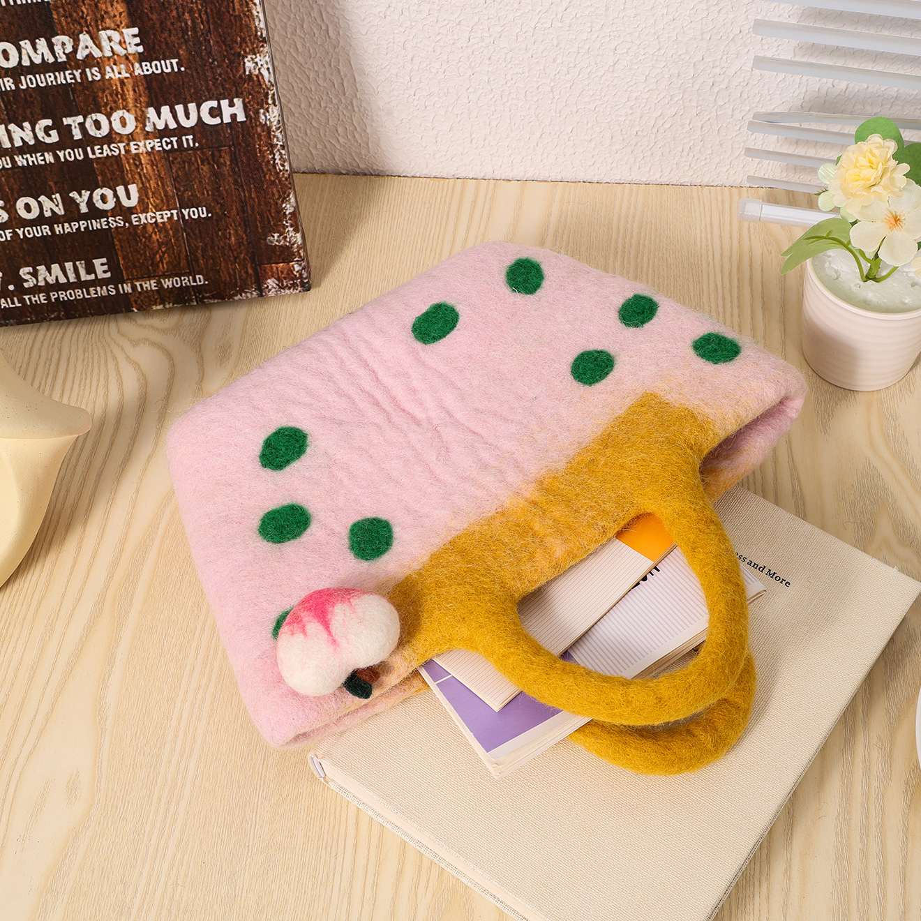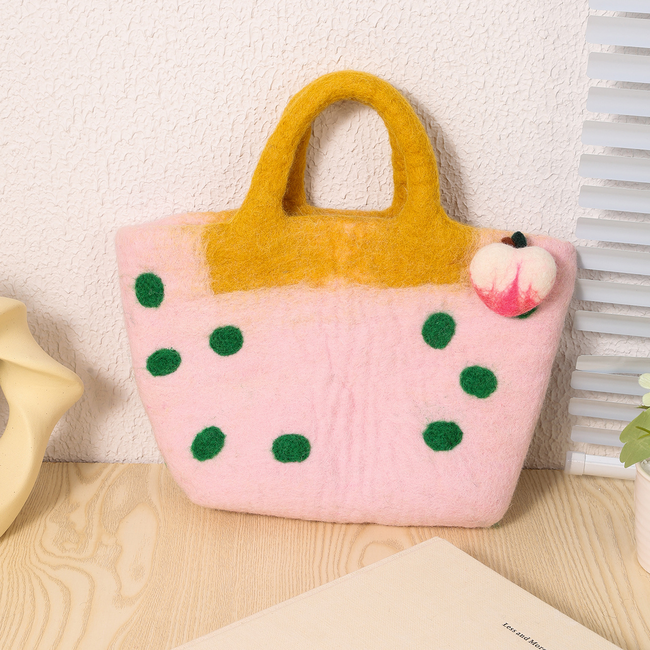 桃心手工羊毛毡手提包春天系立体爱心花园森系文艺清新手拎包批发 English | 投诉