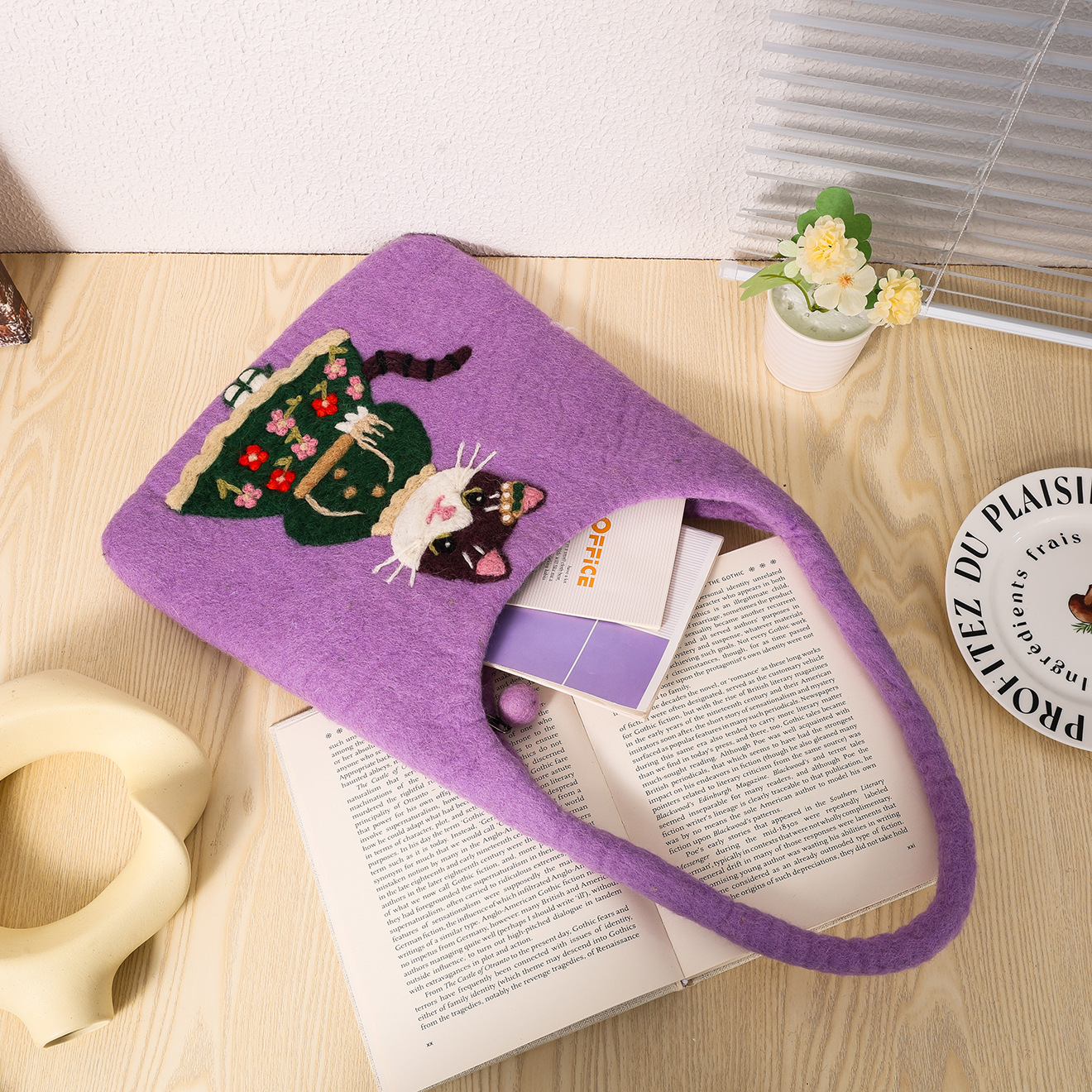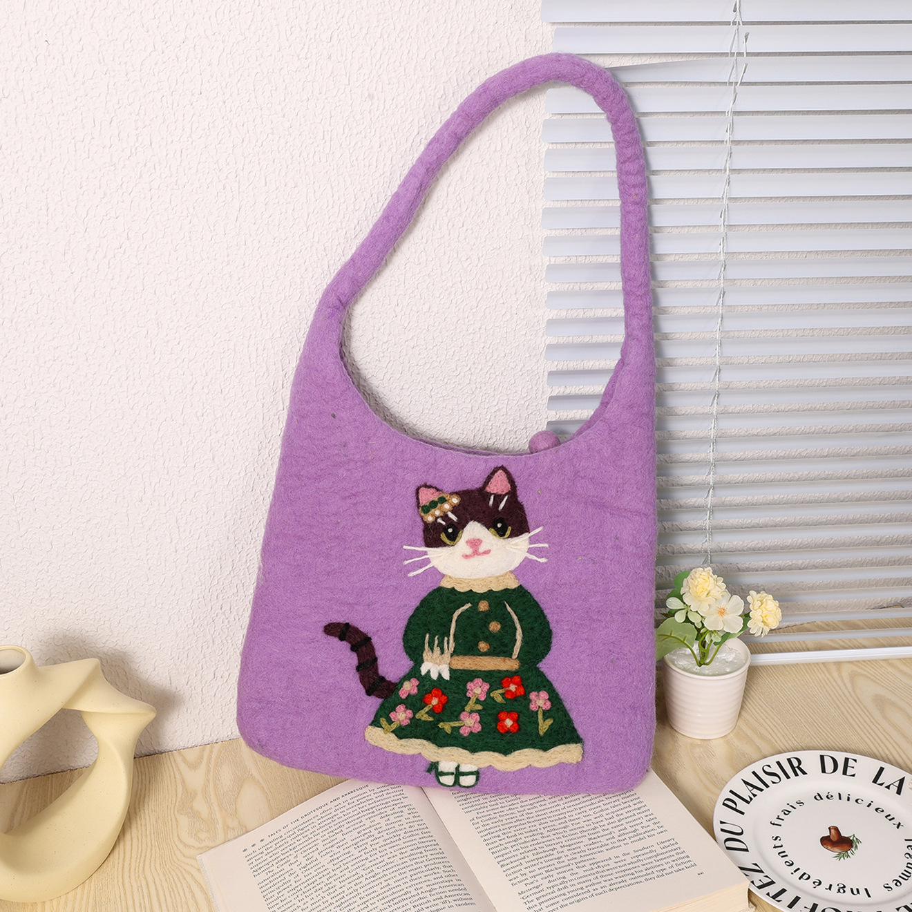 尼泊尔手工羊毛毡包包小猫手提包立体圆桶包包卡通可爱女生小众包 English | 投诉