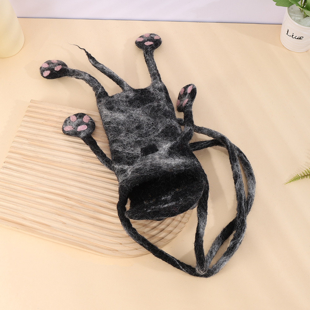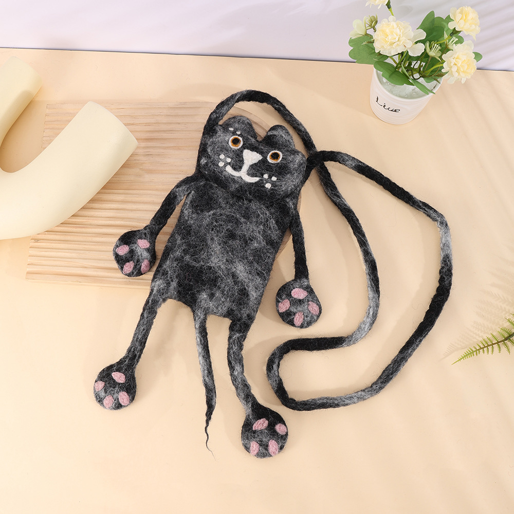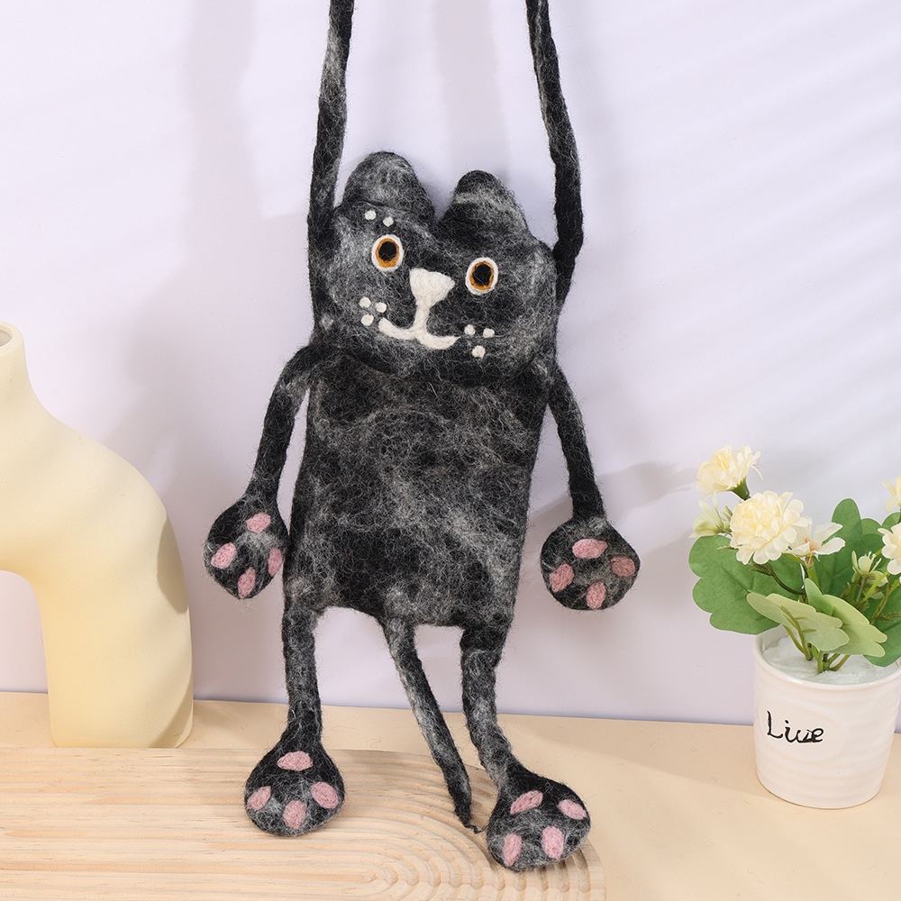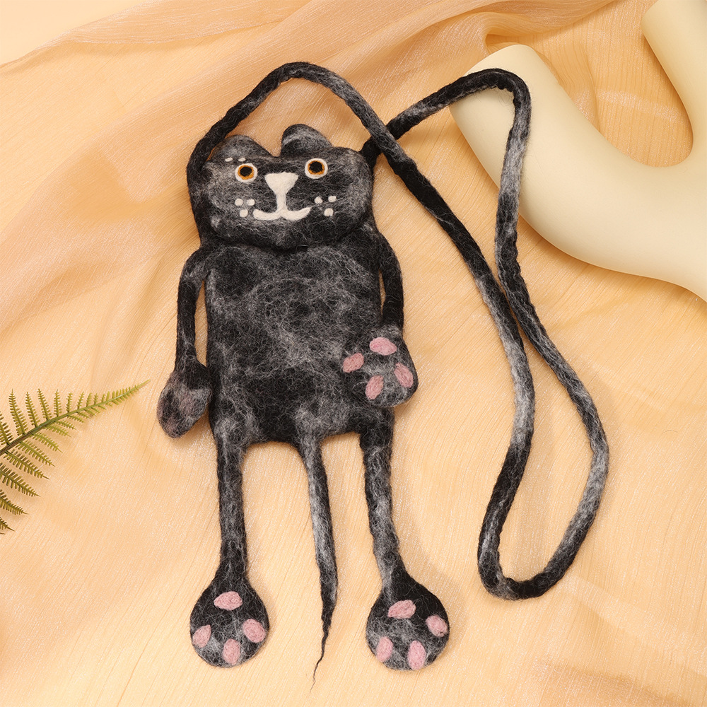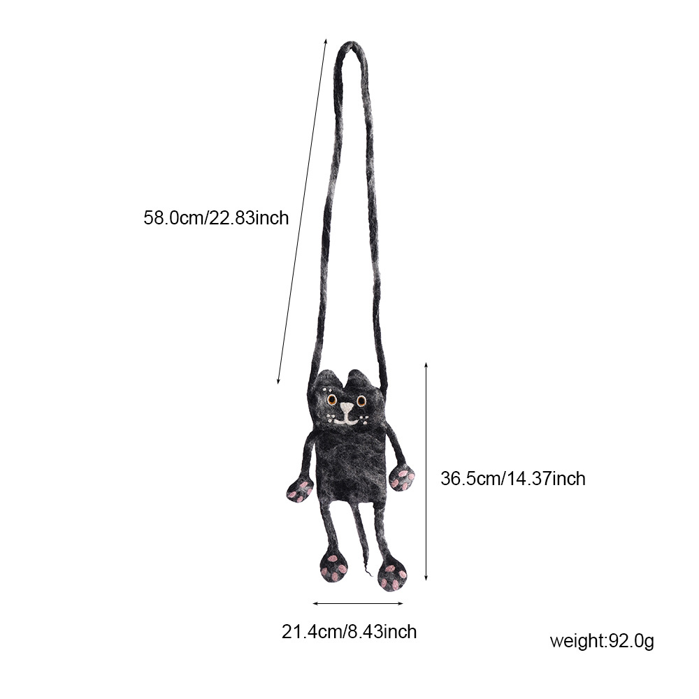 手工羊毛毡小黑猫卡通怪兽创意斜跨手机包时尚百搭小众可爱背包 English | 投诉