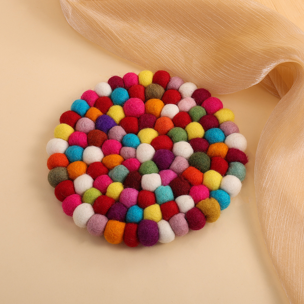 尼泊尔手工羊毛毡锅垫 多彩球球靓丽杯垫隔热垫戳戳乐餐垫批发 English | 投诉