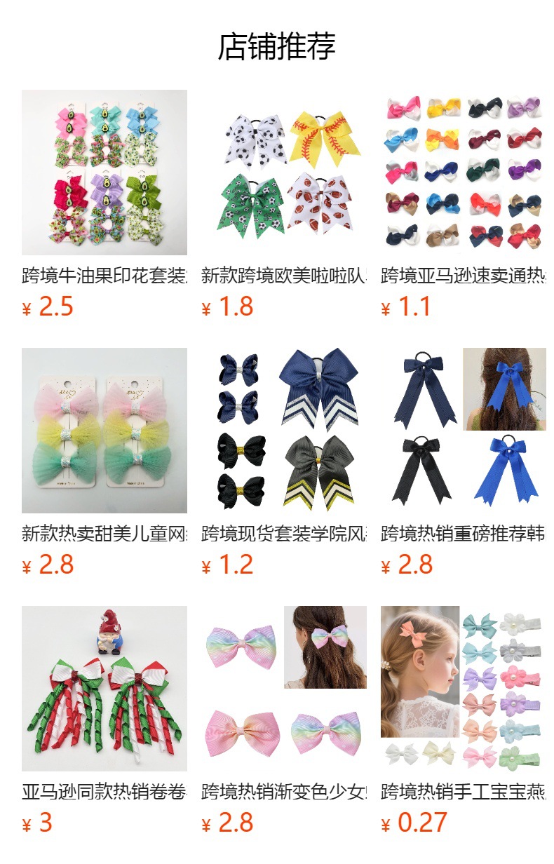 跨境牛油果印花套装发饰新品儿童蝴蝶结发夹可爱侧边发夹一件起批 English | 投诉