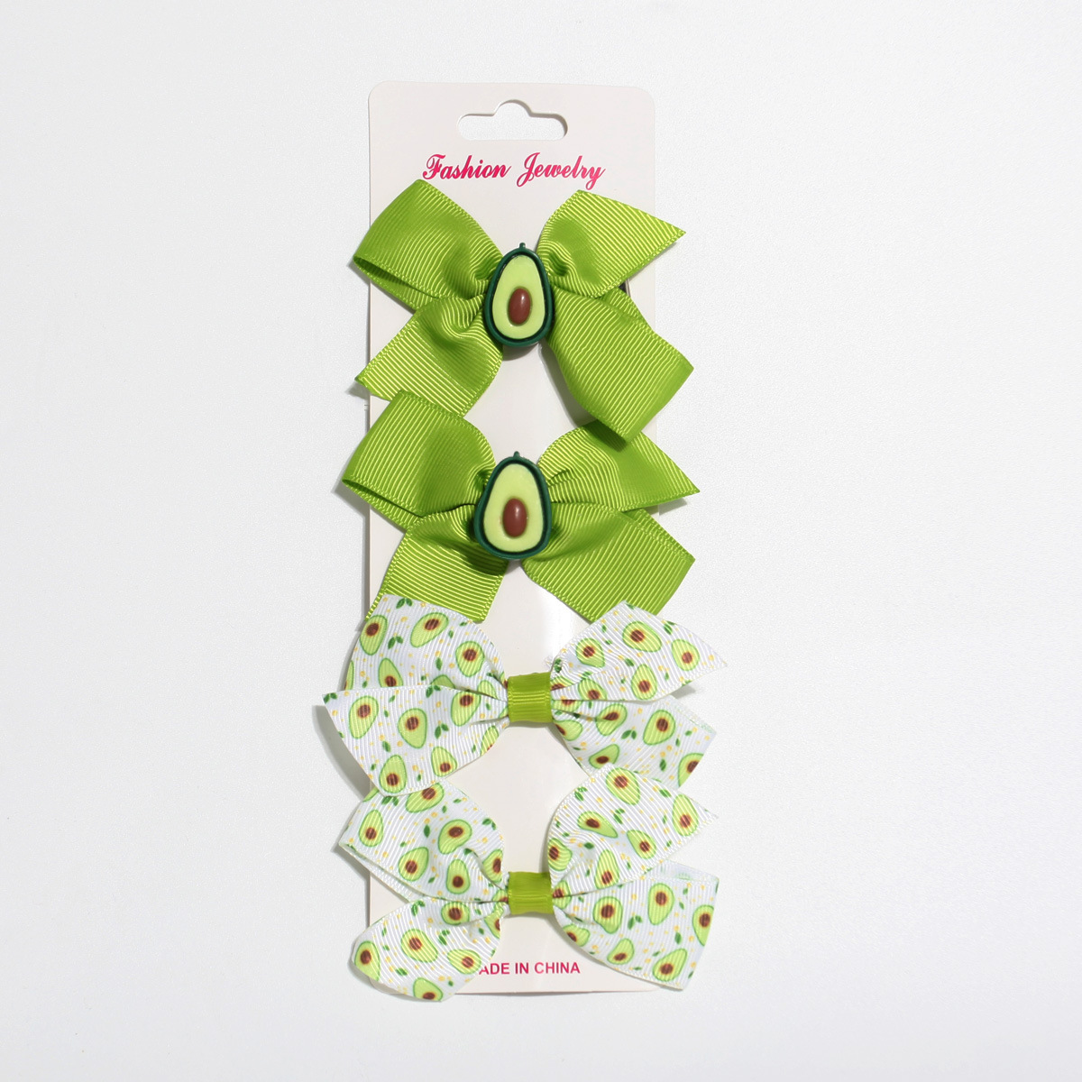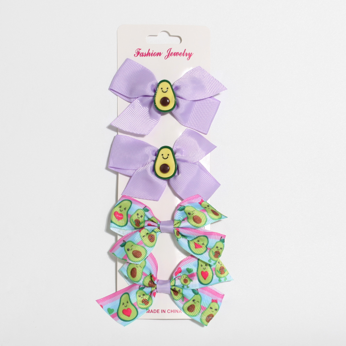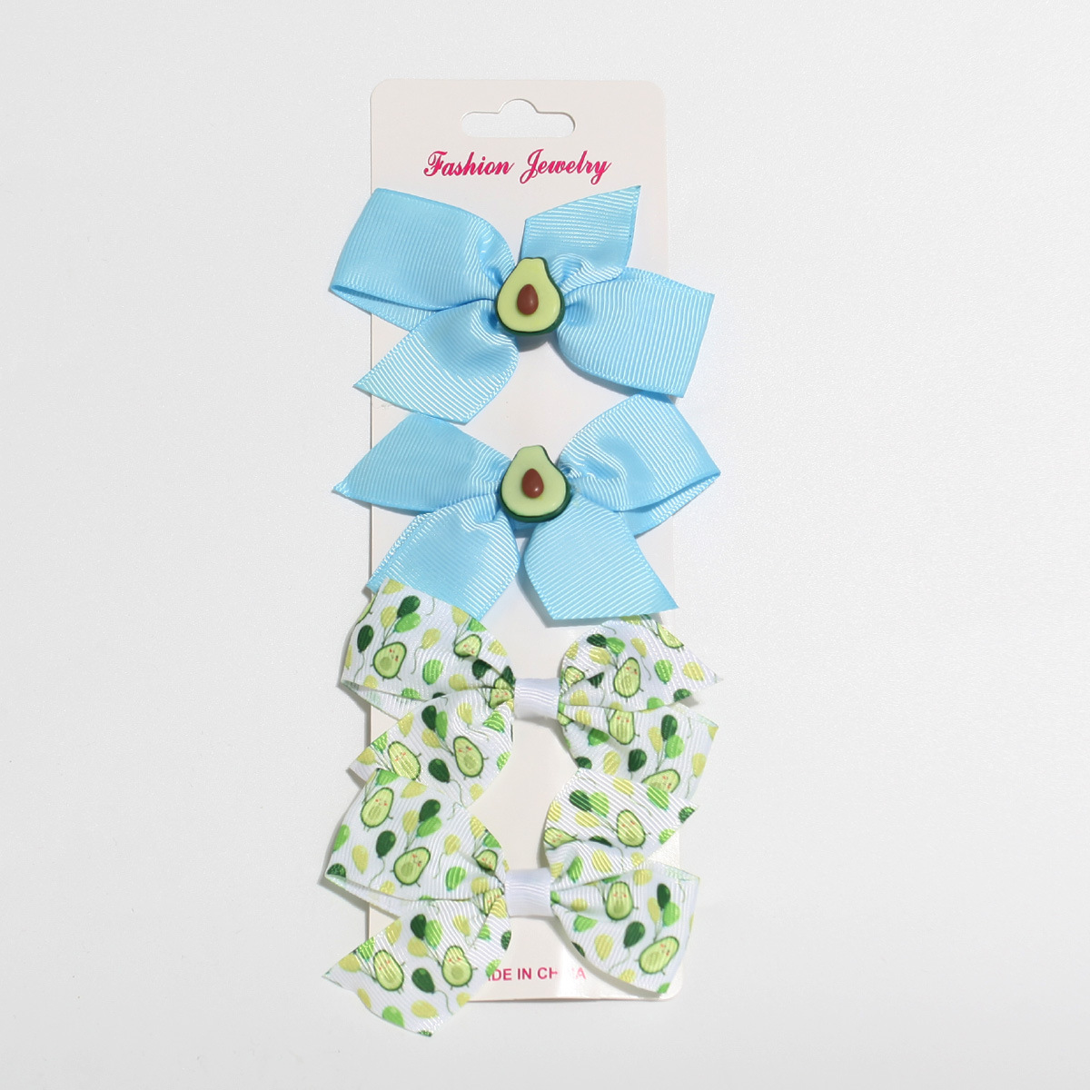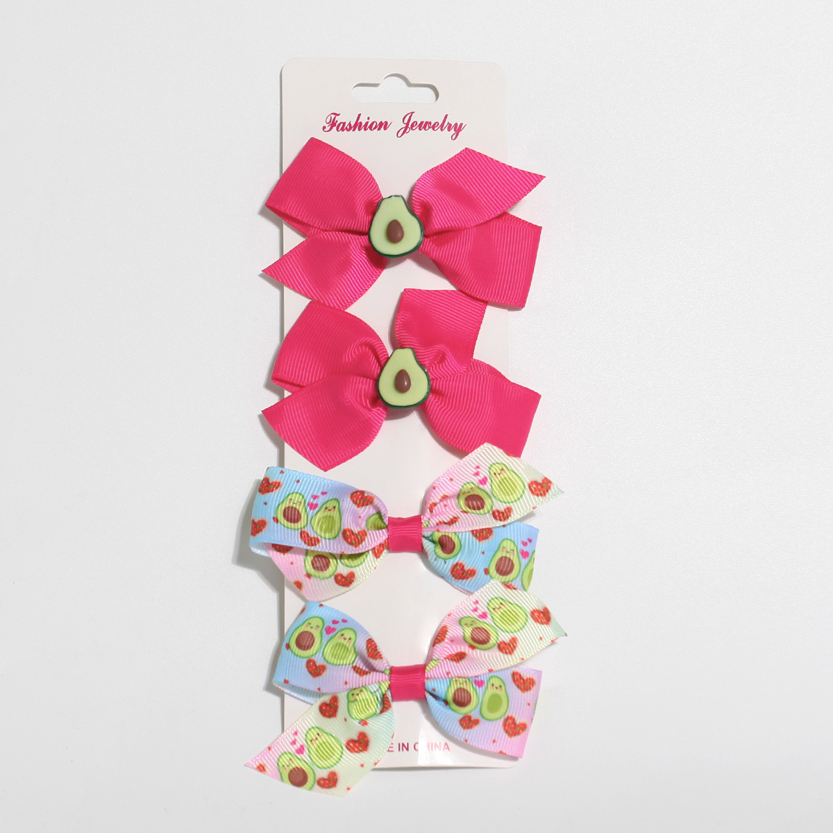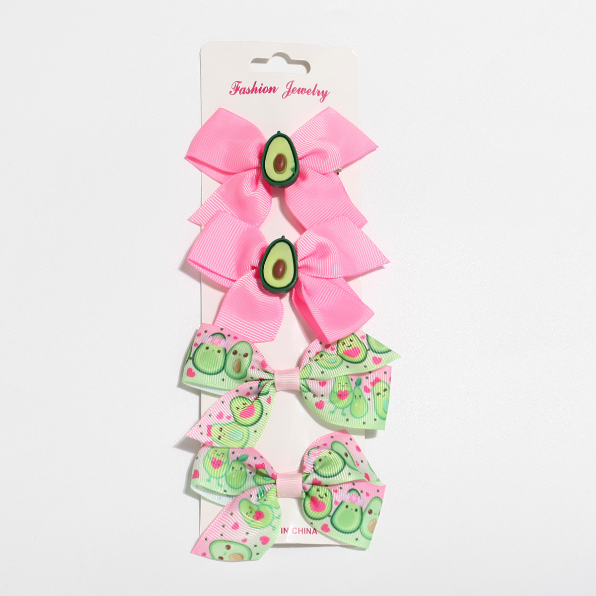 跨境牛油果印花套装发饰新品儿童蝴蝶结发夹可爱侧边发夹一件起批