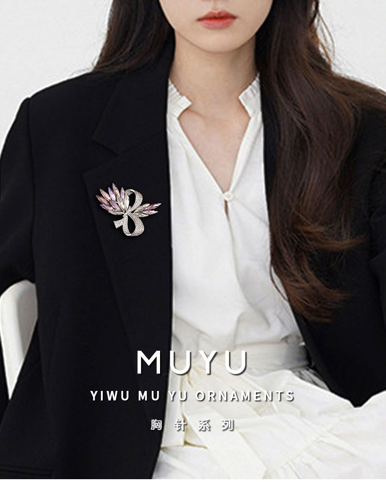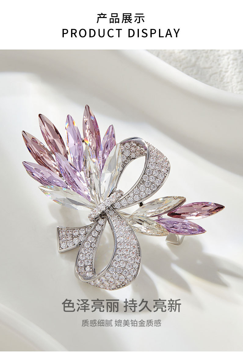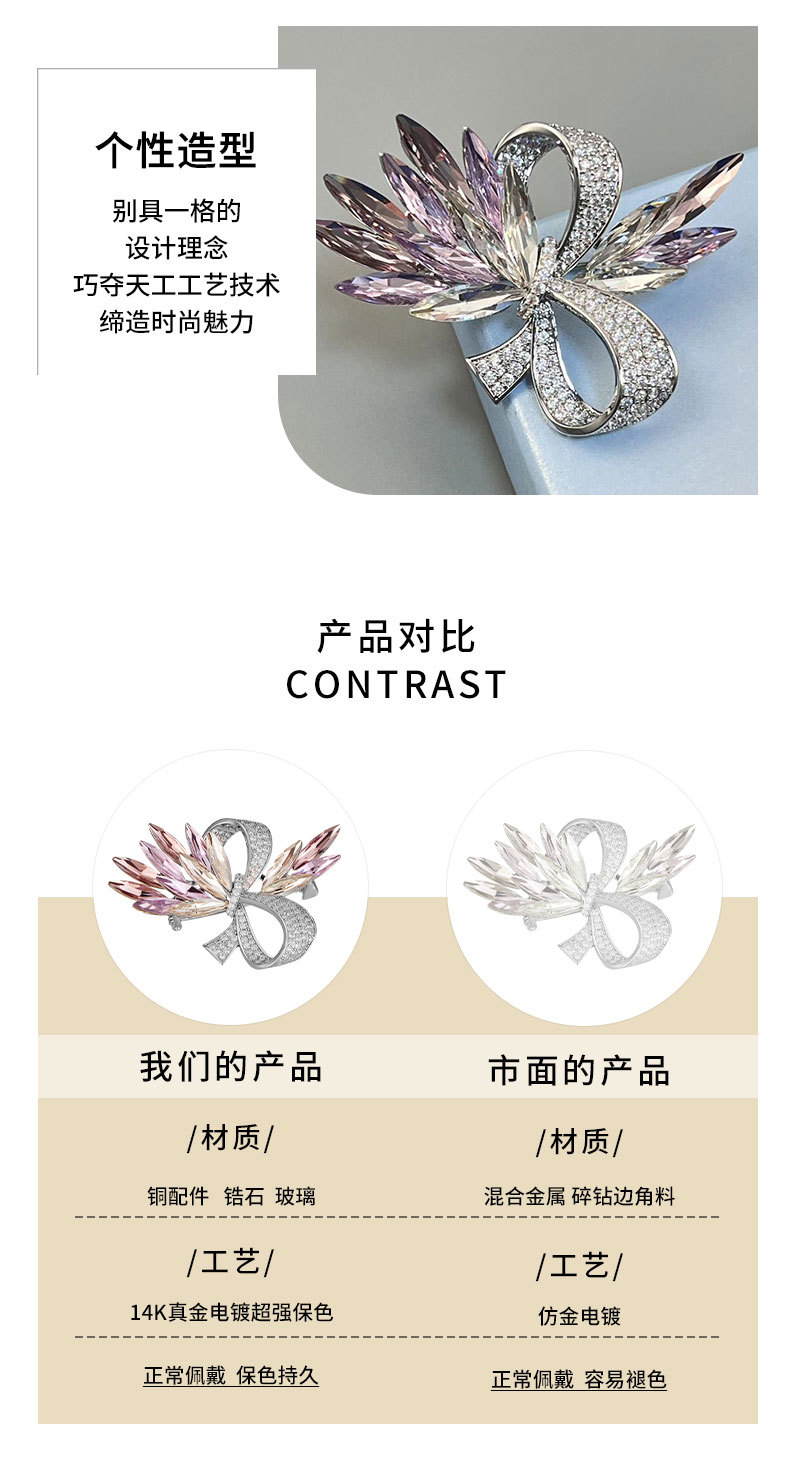 轻奢水晶蝴蝶结胸针原创高级感微镶满锆胸花西装外套配饰精致别针 投诉
