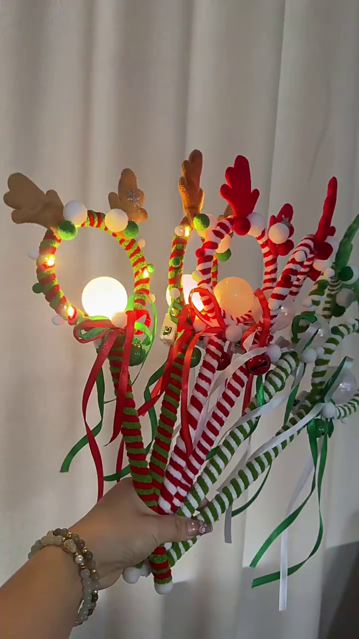 跨境新款魔法棒金丝圣诞节发光棒节日气氛鹿角闪光棒麋鹿玩具批发商品详情描述:欢迎选购我们的跨境新款魔法棒金丝圣诞节发光棒,专为节日气氛设计,融合鹿角闪光元素,打造梦幻麋鹿玩具。产品核心卖点:采用环保ABS材质,内置高亮LED灯珠,一键开关控制,七色渐变闪光,营造璀璨节日氛围。金丝装饰与鹿角造型,可爱生动,适合圣诞节、派对、家庭装饰等多种场景。用户痛点解决方案:许多用户担心节日装饰单调乏味,我们的发光棒提供动态光影效果,解决氛围不足问题;家长忧虑玩具安全性,让您放心购买。情感共鸣:点亮魔法棒,瞬间唤起童年回忆与节日欢乐,与家人朋友共享温馨时刻,传递爱与祝福。这款麋鹿玩具不仅是装饰品,更是情感纽带,助您打造难忘节日体验。