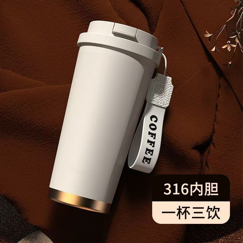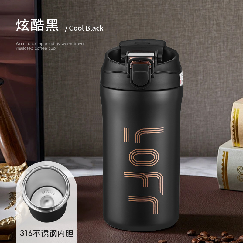 高颜值水杯双饮咖啡杯车载保温杯316不锈钢便携随行礼品外贸水杯